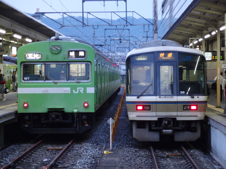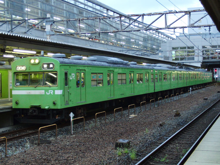 引き続き、関西旅行編。この日は、東海道線沿いに姫路を目指しました。ホテルを抜け出して、朝の京都駅で撮影を行いましたので、そちらをご紹介。 関西でも活躍する205系。こちらの0番台は、東海道本線での運行の後、阪和線に転属し、再び東海道本線に戻ってきたもの。それにしても・・・奇抜なカラーリングですねぇ。 転属の際には帯無しで回送されたという事で・・・それも見たかったな。なお、東海道本線の205系は平日朝ラッシュ時のみの運用(土休日は回送のみ)になりますので、撮影の際にはご注意を。 一色化された113系もまたまた遭遇。 583系急行「きたぐに」は、奈良線ホームにてホームを間違えて撃沈・・・。 117系も一色化される日は近いのでしょうか。貴重な原色だけに大変残念です。 奈良線の103系はNS411編成の1本だけ。 この後はホテルをチェックアウトして、新快速に乗って移動を開始します。続く。 | カレンダー