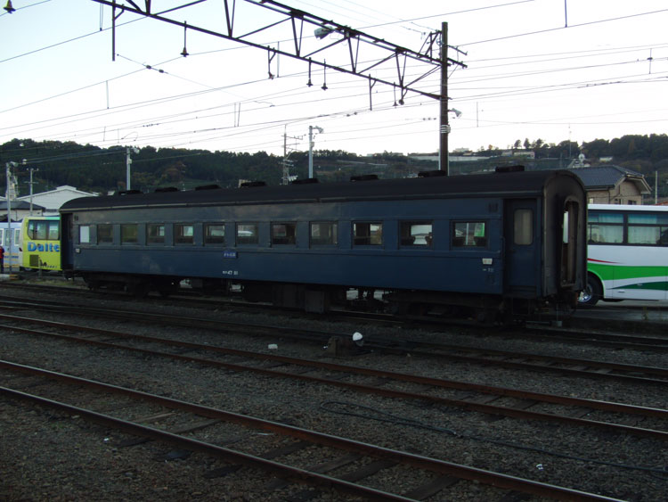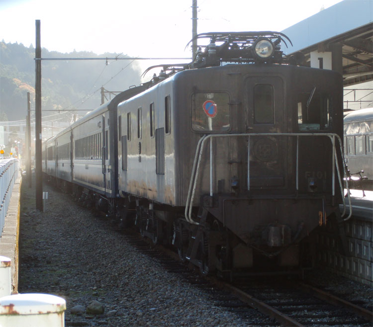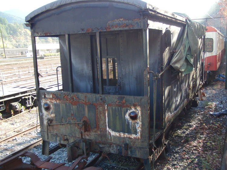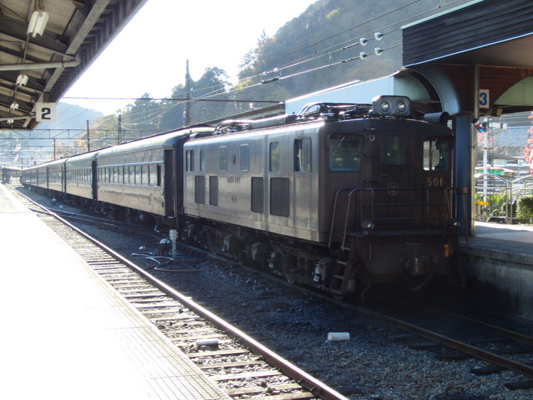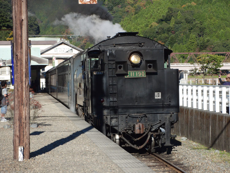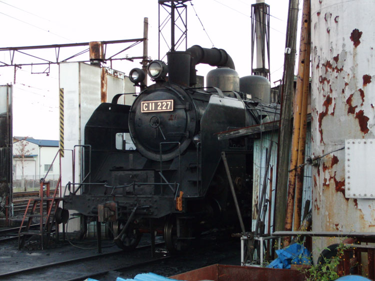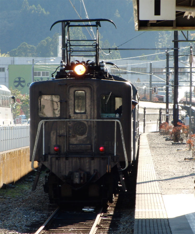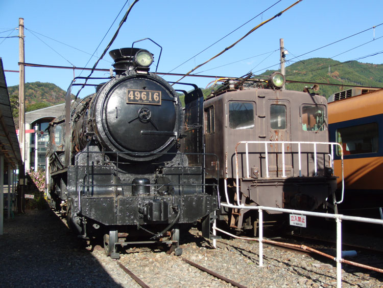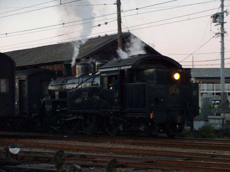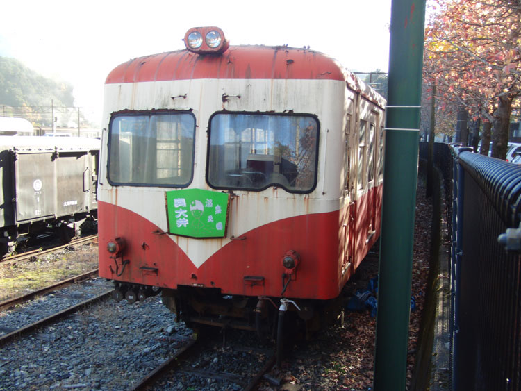 1002レ、C11−190。復路は、新金谷に転車台が無いので逆向きで牽引されます。通称「鉄仮面」と呼ばれていますが、2011年秋頃に転車台が設置され、公園が整備されるとの情報もあります。 1004レの補機、いぶき501。 1002レが発車した後、102レが入線してきました。補機はE101。 千頭駅に保存されている49616号機とE103も撮っておきましょう。 今秋のビッグニュースだった、西武鉄道E31形の大井川鐵道への譲渡。 12/31現在でも千頭駅に留置中。現在の補機が壊れるまで運用に入らないとの情報も・・・。 続いて駅を出場し、留置線に留置されている車両を撮影してみましょう。岳南鉄道からの譲渡車、1105号車。 ワム。 元西武351系である312系。 謎のトロッコ車両・・・果たして。 元近鉄の421系。まだ車籍はあるようです。 駅に戻ります。その前に、外から102レの補機、E102を撮影。 普通金谷行きとE31の並び。 側面逆光になりますが、こちら側からも撮っておきましょう。 この後は、1003レに乗車します。 | カレンダー