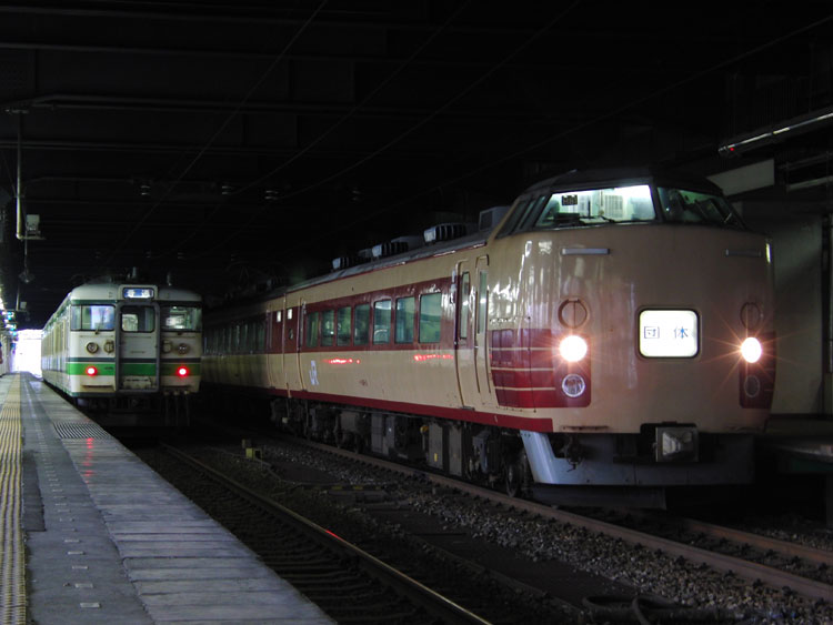 485系特急"北越"と183系H81編成団臨を撮影する