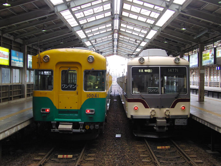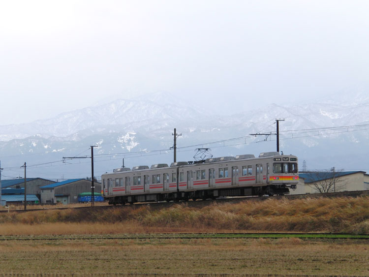 昨年12月24日の話。前回記事の続きです。 福井鉄道福武線で狙いの大型車の撮影に成功し、途中禁じ手を使いつつ富山に到着しました。昼食を摂った後、電鉄富山駅から富山地鉄に乗車。あいにくの曇り空ではありますが、日本アルプスをバックに富山地鉄を撮影します。 電鉄富山駅は駅ビルの中にある頭端式ホームの駅。 ↑141レ 富山地鉄10041F*2B 普通"岩峅寺行"&富山地鉄14771F@電鉄富山 壁には各種HMが掲げられ今でも現役です。 左の10030系(元京阪3000系)に越中三郷駅まで乗車。さすがに平日の昼間ということで乗客の姿はまばらでしたが、途中駅でも何人か乗降がありました。電鉄富山駅から10分ほどで到着。 ここから徒歩10分の撮影地へ、うっすらとですが何とか後ろの日本アルプスも見えていました。こちらは地鉄オリジナル車両の14760系。 ↑142レ 富山地鉄14773F*2B 普通"電鉄富山行"@越中三郷〜越中荏原間 後追いですが、2013年11月にデビューしたばかりの元東急8590系17480系も通過。塗装は東急時代のまま、改造も最小限に留められているようです。 ↑331レ 富山地鉄17481F*2B 普通"立山行"@同上(後追い) そして今回の目的となる京阪特急色の10033Fによる"ダブルデッカーエキスプレス"が通過。京阪特急色の10030系10033Fに、2013年に京阪で廃車となったダブルデッカー車が譲渡の上組み込まれ、"ダブルデッカーエキスプレス"としての運行が始まりました。 ↑UN10 富山地鉄10033F*3B 特急"電鉄富山行"@同上 この後雪が降ってきて露出が急激に落ちたため撮影は終了、富山駅に戻って早々とこの日の宿にチェックイン。夕食に出たついでに富山地鉄軌道線の7020号車を撮影。富山は治安も良く、何を食べても美味しい良い街でした。富山駅に着いた途端雨が激しくなってしまい、市内を観光できなかったので残念。いよいよ来年3月に迫った北陸新幹線の開業で文化にも変化が起きるのでしょうか…。 ↑富山地鉄7020号車 "大学前行"@地鉄ビル前停留所 翌日は、413・475系の撮影からスタート。続きます。