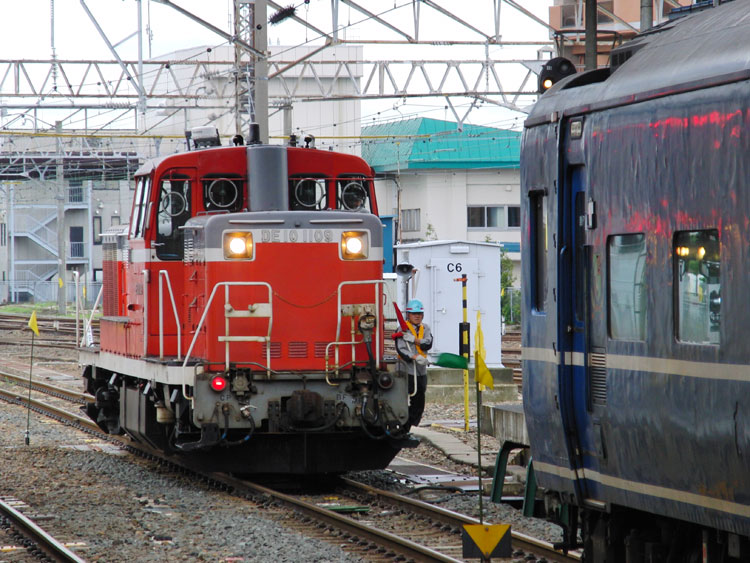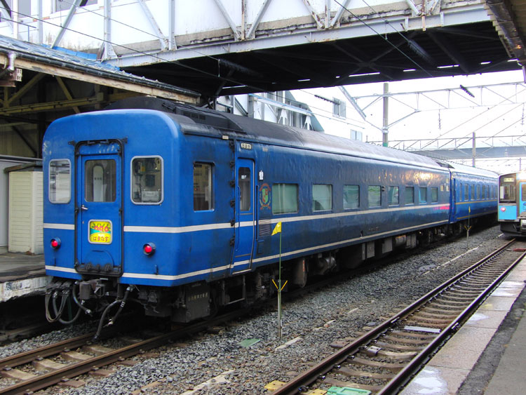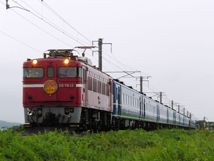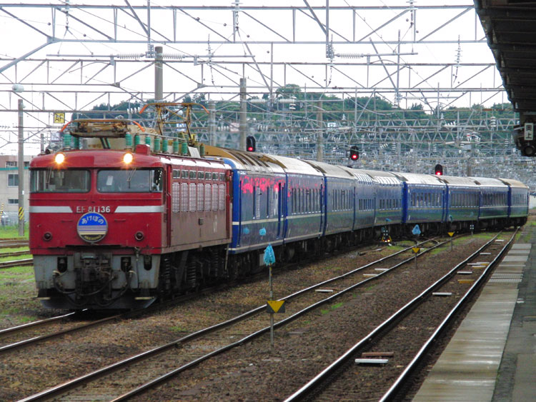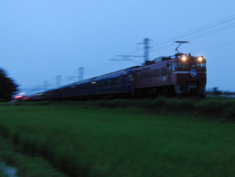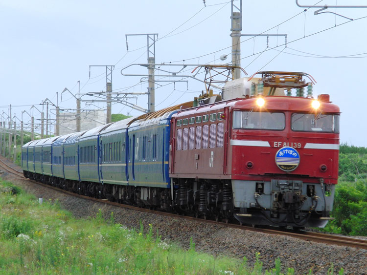 この日は、油川でED79牽引の急行"はまなす"から撮影開始。 "はまなす"は始発前に青森駅に到着するため、列車利用だと撮影できません。そのため、前日夜にお願いしてタクシーを呼んでおき、油川まではタクシーで移動。 そして油川の撮影地へ向かいますが…そううまくは行かず、雨が降っていて暗く、1レは撮れる状態では無いので無難に流し。 ↑1レ ED79 7[函]+24系25形客車12B 寝台特急"北斗星"@油川〜津軽宮田間 上りの撮影地に移動、待機中に雨は止んだものの露出が稼げず、ザラザラになってしまいました。要リベンジです。 ↑202レ ED79 13[函]+14系・24系客車12B 急行"はまなす"@津軽宮田〜油川間 後続の初電は八戸線に直通するキハ40・48が充当されるので、そちらも撮影する予定だったのですが、雨で体が冷えてしまったので青森駅に帰還。青森駅では到着した"はまなす"が入換待ちで停車中でしたので何枚か。現役の14系座席車もここだけになってしまいましたね。 ↑同上@青森 この後はホテルに戻って朝食を摂り、ねぶたの展示施設「ワラッセ」を見学した後、秋田に向かいます。続く。 | カレンダー