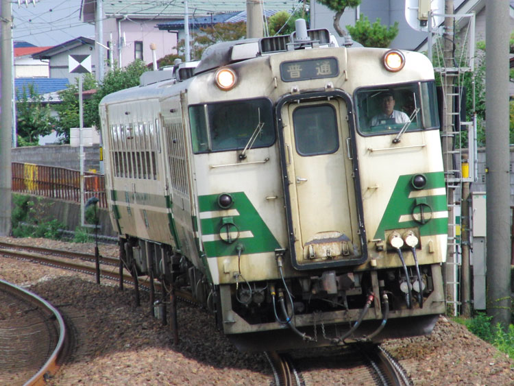 この日は、秋田県内は早朝の通過となる2021レ寝台特急"あけぼの"から撮影開始。 朝食サービス時間帯が始まる前にホテルをチェックアウトし、秋田を5:42に発車する羽越本線酒田行きに乗車。羽越本線は普通列車の本数が少ないため、早朝であっても地元の高校生が多く、車内は混雑していました。普通列車を下浜駅で下車し、10分ほど歩いて撮影地に到着。後ろからEF81牽引の貨物列車が接近。 ↑****レ EF81 716[富山]+コキ1*B@下浜〜道川間 下りの練習電はなく本番。あいにくの曇り空でしたが、片パン走行が撮影できたのでまあ良いでしょう。日本海側の天気は本当に読めません。 ↑2021レ EF81 139[青]+24系25形客車9B 寝台特急"あけぼの"@道川〜下浜間 撮影後は上りの普通列車まで少し時間があるので近くの海岸へ、ここで朝食。海水浴シーズンとはいえ、さすがに朝6時半の海には誰もいません。朝食は、秋田駅で購入しておいた駅弁「和牛こまち弁当」。 思っていたほど時間がなく、食べ終えると急いで下浜駅へ。下浜駅からは、530M酒田行きに乗車して酒田へ。対向列車が遅れているとかで途中駅遅れが出ており、酒田から所定の"いなほ"に接続するか微妙でしたが、数分の遅れで済んだので無事接続。酒田駅には高崎線での運用を終えて改造待ちの211系が疎開留置中でした。211系は東日本管内の様々な場所に疎開されていましたね。 酒田からはいなほ6号に乗車、この日は前面LED故障のR28編成が充当。つい先日、特急「いなほ」の全列車がE653系に置き換えられましたので、これが最後の485系「いなほ」乗車になってしまいました…。 ↑2006M 485系R28編成6B 特急"いなほ6号"@酒田 顔は違えど中身は485系、快調に飛ばして目立った遅れもなく、下車駅の新発田駅に到着。 新発田駅では、新発田東公園に保存されているD51 512号機を訪問します。続く。