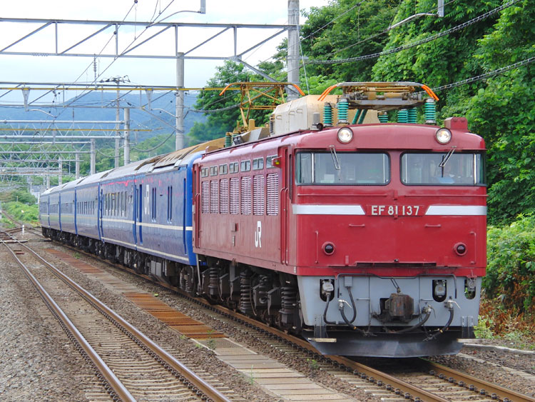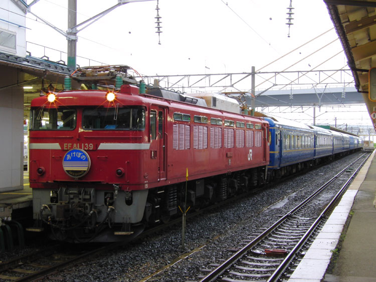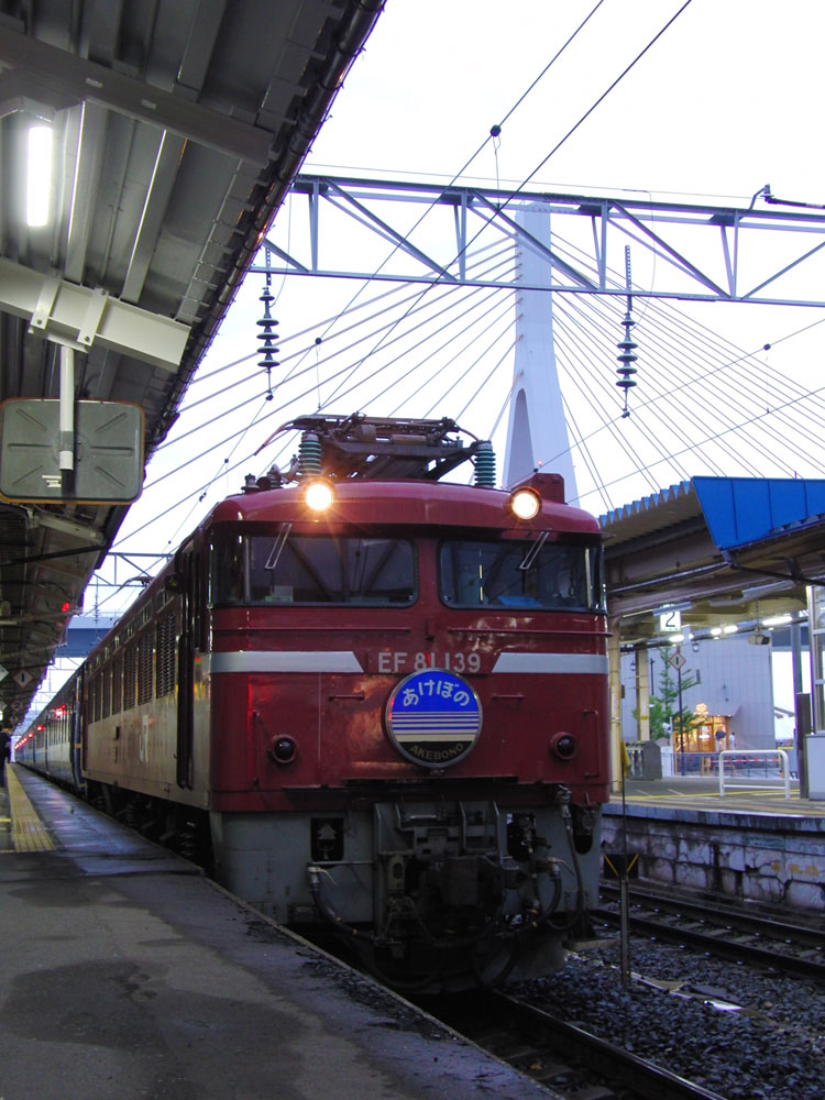 この日から8月2日にかけて、東北日本海側縦断旅行に行ってきました。初日となるこの日は、上野駅から2021レ"あけぼの"に全区間完乗し、青森へ向かいます。 旅の前にちょっと贅沢。町田からLSEの後ろ展望席に空席があったので、新宿まで乗車。地下化した下北沢を通過! 新宿で夕食を済ませ上野へ、13番線ホームにスタンバイ。少し遅れて推進回送が入線してきました。 長岡はEF64 1032号機にお世話になります。 ↑2021レ EF64 1032[長岡]+24系25形客車9B 寝台特急"あけぼの"@上野(以上2点) 推回が遅れていたこともあり、急いで車内へ。こちらが今夜のお宿。今回はB寝台個室の2階の部屋が取れました。 荷物を置いて一息つくと、列車はすぐに動き出しました。小窓から帰宅時間帯の都心のホームを優々と見下ろしながら、大宮に到着。大宮では石炭輸送列車の5783レを追い抜き、停車もほどほどにすぐに発車となります。 大宮を定刻に発車。翌日の行程を確認しつつ、列車は高崎線を軽快に進んであっという間に高崎に到着。翌日以降のことを考えるとさすがにマズいので、高崎から少し休むことにし、新前橋を通過した辺りで就寝…も、高崎で交代した機関士はあまり技量が無かったらしく、水上停車時の衝撃で起床。 水上を発車すると、人里離れた真っ暗な山中を進みます。次に起きたのは羽越本線の京ヶ瀬駅。こちらでは上り2022レ"あけぼの"と交換。 続いて村上。窓から外を覗くと、ちょうど115系が停泊していました。 越後早川では8002レ"トワイライトエクスプレス"と交換となりますが、この日はトワイライトが遅れていたため、交換待ちをして少し遅れて発車。この辺りから雨が降り出して少々青森の天候が心配に。 次に起きると仁賀保、この時には貨物等の遅れも関係しさらに遅延が拡大して約25分遅れになっていました。青森到着後のことも考えるとあまり遅延が拡大してしまうと困るのですが、なんとか少しずつ遅延が回復したため大丈夫でした。 秋田では男鹿線のキハを横目に。あけぼのからの乗り換え客を待ってからの発車、と車内アナウンス。 次の東能代でも、五能線が乗り換え客待ちをしていました。あけぼのは鉄道ファンや旅行客はもちろんですが、秋田・青森両県の地元住民の方々の需要もかなりありました。実際、廃止後には空港利用客が増加したという話も聞きます。あけぼの廃止の影響はやはり少なからず出ているようです。 東能代を発車すると雨も止み、車窓には田んぼが広がっていました。 秋田発車後には乗客も大分少なくなり、車内が落ち着いてきたので各寝台の様子を見ていきます。こちらが今回利用した個室B寝台"ソロ"の通路、両側に個室が配置されており人がすれ違えないほどの狭さです。定期時代には5・6号車に連結されていました。 こちらは開放式B寝台。2段構造の最も標準的な寝台スタイルです。定期時代は2〜4号車の連結でした。羽後本荘〜青森間では"立席特急券"を利用すると、寝台は使用できないものの特急列車としての乗車が可能でした。こちらもそこそこ利用客も多く、廃止後には代替の快速列車が運転されています。 そしてこちらがあけぼのの編成中では最もグレードが高い、A寝台個室"シングルデラックス"7号車に連結されていました。臨時化後は連結されなくなり、青森のオロネ24の定期運用が無くなってしまいました。 そういうしているうちに大館を発車。大館駅の青森方には使われなくなった転車台が残っていました。大館機関区時代のものだそうです。 各停車駅も1分未満の停車時間で発車し、新青森には約12分遅れで到着。いよいよあけぼのの旅路も終盤、降りる支度を済ませ、きっちり車内放送も収録。途中遅れこそ発生したものの、抑止や途中打ち切りにはならず、無事に終点・青森駅に到着しました。夏とはいえ、長区間の運転となる"あけぼの"の安定した定時運行がいかに大変なことなのか実感。臨時として最初の運転となるGWの"あけぼの"は乗車率も良かったようで、臨時列車を恒久的に運転してもらうためにも、何よりもまず利用することが一番重要ですね。夏臨は予想以上に設定がありますので、利用される方も多いのではないかと思います。 青森駅到着後は、DE10牽引で青森車両センターに引き上げます。789系特急"スーパー白鳥"との並び。 ↑構回2021レ DE10 1109[青]+24系25形客車9B&4001M 789系HE-106編成"特急スーパー白鳥1号"@青森 スーパー白鳥発車後に4番線から。旋回窓の寒冷地仕様の厳ついDE10、さすが雪国。これもまた渋〜い編成で楽しい。 ↑構回2021レ DE10 1109[青]+24系25形客車9B@青森 あけぼのの入庫を見届け、改札口を出てまずは"メモリアルシップ八甲田丸"に向かいます。続く。