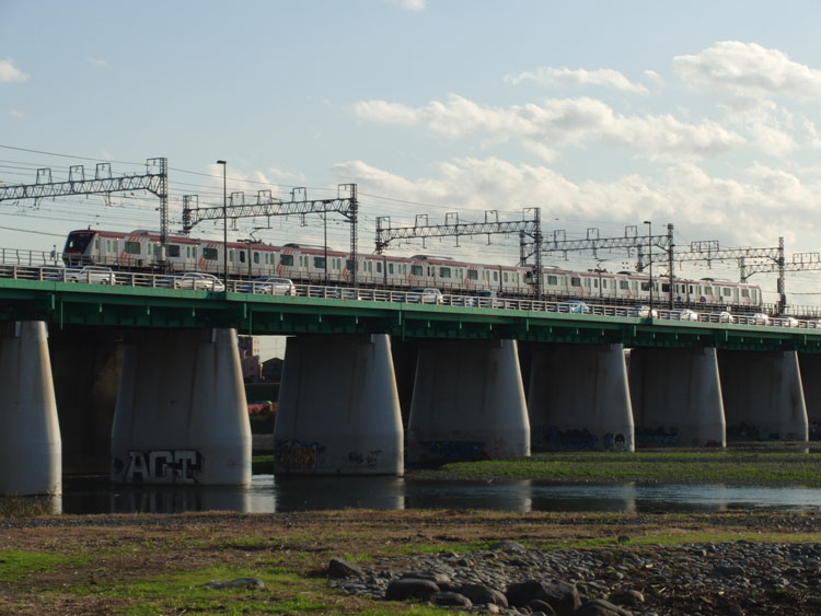 この日は、多摩川サイクリングロードを、関戸橋から小田急線の登戸駅付近まで走ってみました。途中では、何箇所か鉄道路線の橋梁がありましたので、ちょっとご紹介します。 京王永山駅から、国道18号線をしばらく走って多摩川へ。関戸橋と平行して京王線が走っています。 サイクリングロードに入ってから、9000系が通りかかったので自転車を止めて撮影。 今回は左岸を走行。しばらく走って、途中で府中郷土の森交通公園の保存車に寄り道(こちらは次回記事で詳しくご紹介)しつつ、武蔵野貨物線・南武線の橋梁に到着。残念ながら貨物を待っている時間はなかったので、南武線だけ。 またまた走行を再開。府中街道の橋梁を超えてから、しばらく見えないですが西武多摩川線と並走して、稲城大橋を通過。今度は京王相模原線の京王多摩川〜京王稲田堤間の橋梁。 ちょっと走ると、不思議な東京と神奈川の県境。東京都に入るといきなり道が砂利に。そして、今回の目的地である小田急線の橋梁と平行している世田谷通りの多摩水道橋に到着となりました。 ちょっと小田急でも撮ってみるかなと思っていると・・・なんと引退間近の5063F先頭の急行新宿行きが登場!ということで急いで撮影です。 続いて、7000形LSEも登場。 残念ながら晴天とはなりませんでしたが、運良く5000形に遭遇できたので良かったです。 ということで、第一回多摩川サイクリングはここまでで終了。向ヶ丘遊園駅で自転車を折りたたみ、帰宅となりました。・・・が、帰宅前にちょっとだけ途中下車して撮影を行いました。続く。 | カレンダー