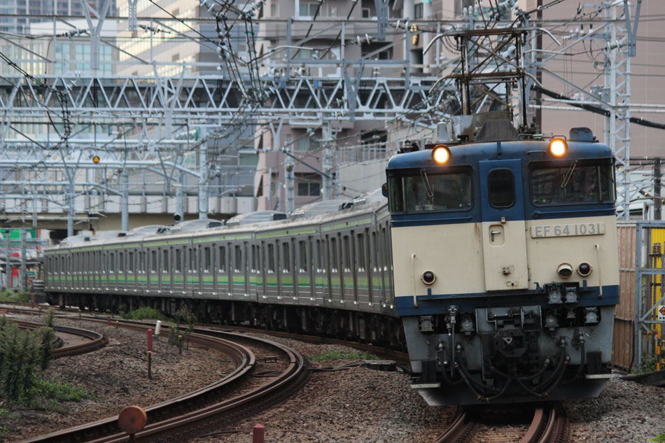 ・6日 台風接近に伴い、終日古淵〜東神奈川間で徐行運転が行われ、大幅に本数減&遅れが発生しました。朝から根岸線直通列車は東神奈川止まりになりましたが、入庫の関係で大船行きのみ運転されました。810Kは大幅に遅れたため小机止まりとなり、しばらく小机で留置された後、回送になったようです。 ↑846K E233系H006編成8B 各停"大船行" ・10日 4日に疎開先の小山から返却されていたH8編成が、海外譲渡のためEF64 1031牽引で新津へ配給されました。 ↑配9766レ EF64 1031[長岡]+205系H8編成8B 譲渡配給@原宿 ・12日 尾久に疎開中のH27編成を撮影。 北斗星の入区の時間に合わせて行ったので並びも。 17日のH1編成の配給は沖縄にいたので撮影無し。 ・21日 集約臨が運転されました。 ↑9382M 185系B2編成8B 集約臨@片倉 ・24日 21日に疎開先の尾久車両センターから返却されていたH27編成が、海外譲渡のためEF64 1031牽引で新津へ配給されました。 ↑配9766レ EF64 1031[長岡]+205系H27編成8B 譲渡配給@五反田 かつて毎日のように走っていた山手線の線路を横目に、機関車に牽かれて帰らぬ旅へ。 ↑同上(後追い) 新宿停で追い抜いて新大久保へ。こちらは後追いメインで。 ↑同上@新大久保 H27編成を以て、約半年間続いて横浜線205系のインドネシア譲渡は完了となりました。譲渡配給コンプとは行きませんでしたが、配給のスジが早朝だったおかげでここまで追いかけることが出来ました。今では、毎週始発電車に乗って出かけていたことが遠い昔のように感じられます。いつか、インドネシアでの元気な姿を見に行きたいものです。 さて、205系はいなくなりましたが、引き続き横浜線の記録は続けております。 ・26日 立川〜八王子〜中山間で、H017編成を使用した団体臨時列車"立川ひまわり号"が走行しました。復路までの時間、H017編成は橋本中線で留置され、新時代を象徴するような4並びが実現。 ヘッドマークの掲出はありませんでしたが、側面窓にはヘッドマークの絵柄が描かれた張り紙が貼られていました。 回送で中山へ。 ↑回9324M E233系H017編成8B 臨時回送 中山から乗客を乗せて立川へ。横浜線E233系、疎開で新宿〜武蔵小金井間は走行歴がありますが、八王子〜立川間は初走行でした。 ↑9526M E233系H017編成8B 団体臨時列車"立川ひまわり号"@八王子〜豊田間 ↑同上@豊田〜日野間 運転後には、立川〜八王子〜橋本間で返却回送されています。 ↑回9326M@八王子 10月の撮影分は以上になります。撮影できなかった動きは以下のとおりです。置き換えが完全に終了したため、こちらの掲載は最後になります。 〜10月9日:H1編成が本郷台に一時疎開。 9月30日〜10月4日:H8編成が小山に一時疎開。 10月3日:H17編成が海外譲渡のため、EF64 1031牽引で新津へ配給。 10月9日〜10日:H1編成が国府津に一時疎開。 10月17日:H1編成が海外譲渡のため、EF64 1031牽引で新津へ配給。 10月21日:尾久に疎開していたH27編成が返却回送。