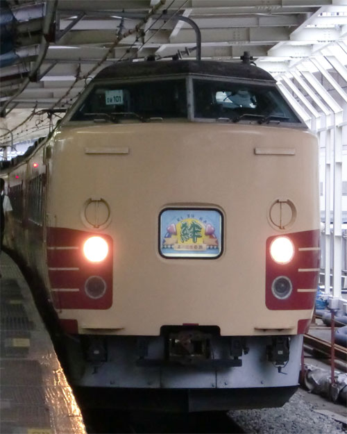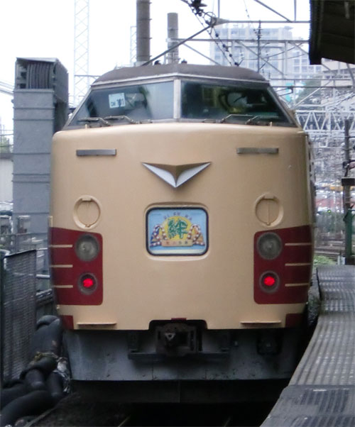 午前中は中央線の撮影に行ってきましたが、帰宅後「鉄道目撃情報SNS」を見ると高崎〜横浜間で運転されている183系OM101編成の団臨に特製ヘッドマークが付いているということで、復路の運転を狙って撮影しに行ってきました。 駅員さんに聞いた所、横須賀線10番線に入るとのことなので東海道線8番線側から入線を狙いました。 比較的ゆっくりと入線したので2発撮影できました。 続いて、停車時間を利用して10番線からお面撮り。 後追い。シンボルマーク付きの方がやっぱり締まってます。 「絆号」撮影後、いろいろネタがあるので少々滞在。まずは,横浜行きの「成田エクスプレス」を撮影。E259系がデビューしたので現在はこの3連が見れません。 修学旅行列車として183・189系10連が通過。 京浜東北・根岸線ホームから京急を撮影していると、ラッピング電車「あきたこまち号」が後ろですがやってきました。 最後に「やまなみ」の団臨を撮って終了です。 露出がない時間帯の撮影でしたが、種類は多く撮れました。