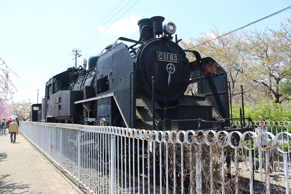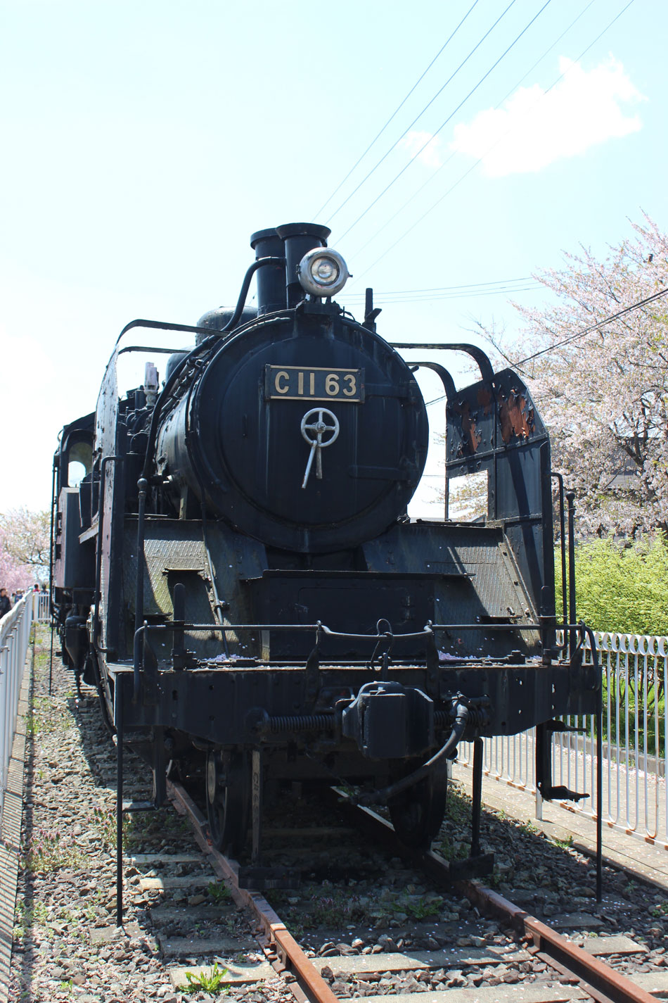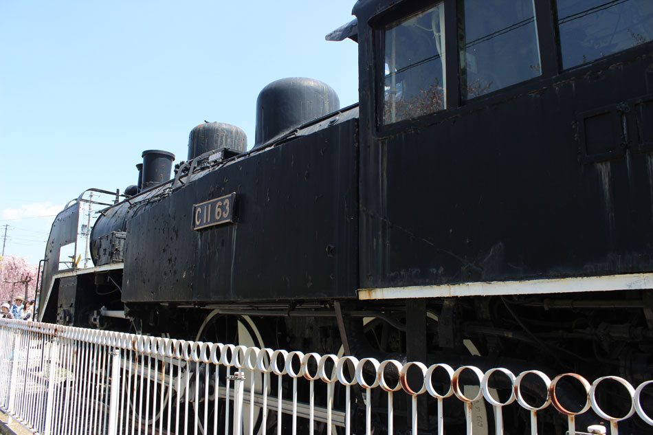 坂下小学校のC58 215号機の後は、喜多方市の日中線遊歩道のC11 63号機を訪問。 ・車歴 製造年月日:1935年3月10日 製造所:川崎車輌 1935年3月10日 尻内機関区 1941年11月 宮古機関区釜石支区(その後釜石機関区に昇格) 1947年4月1日 仙台機関区 1954年10月 会津若松機関区 1966年1月 盛岡機関区 1966年10月23日 長岡第一機関区 1971年11月3日 只見線SLさよなら列車牽引 1971年11月12日 新津機関区 1973年5月24日 小牛田機関区 1974年5月11日 会津若松運転区 1974年11月3日~10日 日中線SLさよなら列車牽引 1975年1月24日 会津若松運転区にて廃車 生涯東北で活躍したカマ。他のC11と同じく現役蒸気最末期は会津若松で活躍し、さよなら運転牽引の経歴もあります。日中線遊歩道の整備に合わせて移設されました。 四方を柵に囲まれており、キャブ内への立ち入りは出来ません。部品の欠落はほとんどありませんが、露天のためか塗装に疲れが見えます。 後部プレートはありません。 さよなら列車を牽引した路線の廃線跡という絶好の場所に保存、人目も多い場所ですので、再整備されてほしいのですが… なお、C11 63の後ろには入れ換え機も保存されています。こちらも状態は良くありません。 日中線遊歩道にはしだれ桜が植えられており、訪問時は満開を迎えてたくさんの観光客が観桜に訪れていました。 この後は、磐越西線の一の戸川橋梁で「DL青い12系客車号」を狙います。続く。