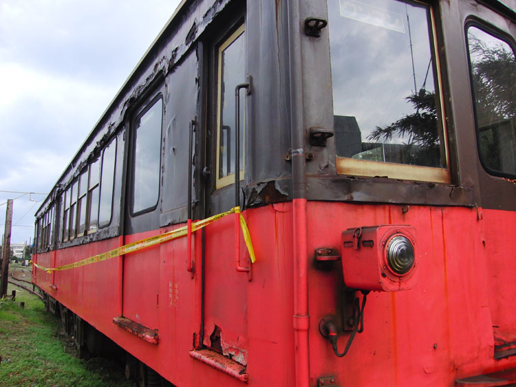 銚子電鉄を撮影しつつ、終点・外川駅にやってきました。こちらの駅には、2010年に営業運転を引退後も、デハ801が動態保存の状態で残されています。 ・車歴 製造年月 1950年5月 製造所 帝国車両製造 1950年5月 伊予鉄道クハ405として新造 1961年 電動車化改造(モハ106に改番) 1986年 銚子電鉄に譲渡 2010年11月23日 さよなら運転 本線の奥にひっそりと佇むデハ801。銚子電鉄に最後まで残った旧型車は、2010年までに2000系に全て置き換えられました。デハ701・デハ702はポッポの丘にて保存されましたが、こちらの車両は動ける状態のまま銚子電鉄に残されています。 外川駅は犬吠駅よりは内陸側に位置しているものの、潮風による塩害で腐食が進んでいます。むしろこの状態でも動けるというのが驚きですね。イベント時の構内走行や、屋根上に作業台を設置して、架線設備の点検のため終電後に本線走行することもあるようです。 前後で顔付きが異なるのも旧型車の魅力。外川方は貫通形になっています。 近づいてみると、かなり腐食しているのが分かります。かつて笠上黒生の留置線でデハ101が朽ちていたのを見たことがありますが、この車両も同じ運命を辿ってしまわないか心配です。通電できるならまだ大丈夫だとは思いますが…。 震災以降再び経営難に陥っている銚子電鉄、なかなか車両の保存・整備にも手が回らないでしょうが、貴重な車両ですし今後も保存が継続されることを願います。 この後は、再び銚子電鉄の撮影に戻ります。昨年のダイヤ改正で日中の交換が消滅する笠上黒生駅へ。続きます。