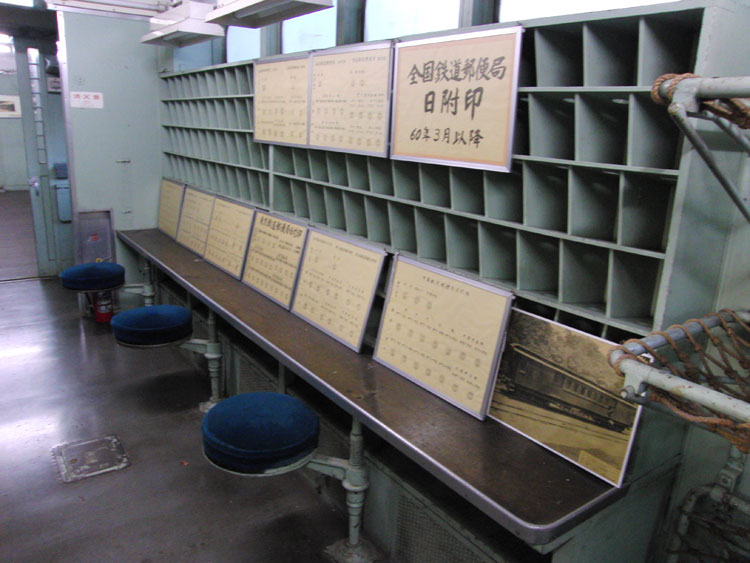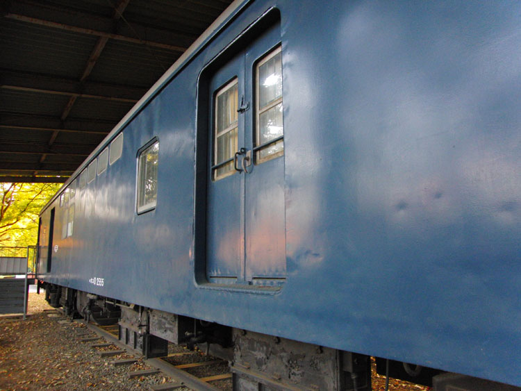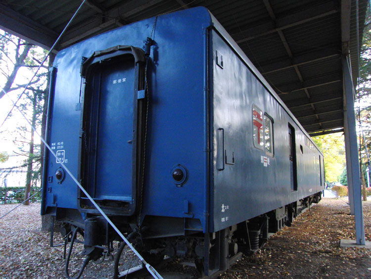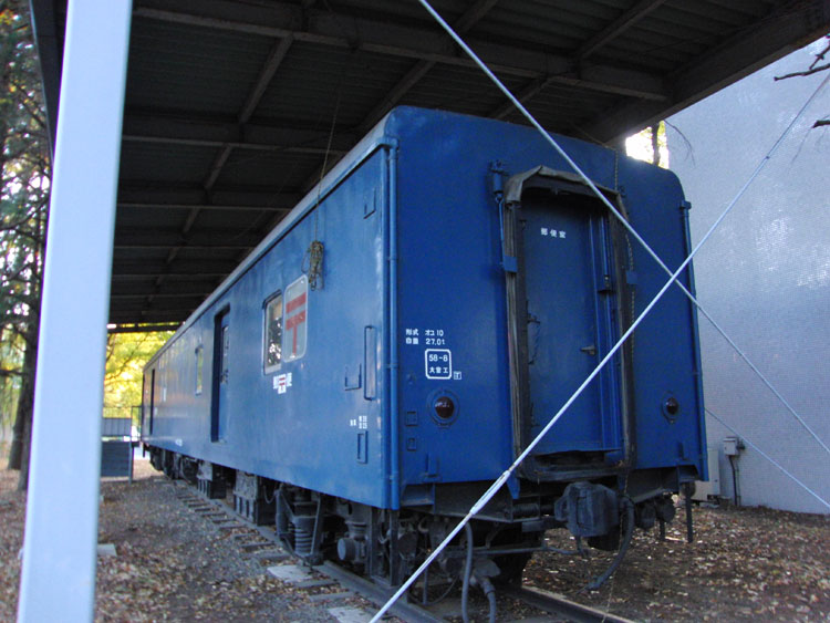 11月24日の話。前回記事の続きです。 豊田車両センターまつりの後は、国立の中央郵政研修センターに保存されている郵便車オユ10 2555を訪問。 ・車歴 製造年 1971年 製造所 川崎重工 1973年 大宮工場にてオユ10 2058から酷寒地向け改造 ○ 車中で作業する乗務員にとって、郵便車は、まさに郵便局舎に等しく愛すべき職場でありました。 ○ 鉄道郵便輸送は、明治5年新橋・横浜間にはじめて鉄道が開業したことに伴い開始され、当時は、荷物室あるいは車掌室の一部を区切って「郵便室」とし、使用していました。 郵便専用車が最初に製造されたのは、明治22年頃といわれています。 ○ オユ10型鉄道郵便車は、一般客車の軽量製造化に伴って製造(明治32年以降)された、わが国最初の軽量郵便車で、広く幹線区に使用されてきました。 その後、国鉄の輸送近代化計画に沿って車体構造の電車化・気動車化が進み、新式性能を持った郵便車が次々に誕生して活躍しました。 ○ ここに展示・保存されている、オユ10−2555は、近年では、東京(隅田川駅)を出発し、東北本線・青函航路・函館本線を経由して根室まで行き、この往復を繰り返していました。 ごく最近では、東京(隅田川駅)から、東北本線・奥羽本線を経由して秋田までの往復をしていましたが、昭和60年3月に福島・秋田間の鉄道による輸送が廃止され、鉄道から姿を消すこととなったものです。 ○ 昭和61年10月には、鉄道郵便車が全廃となりましたが、これまで郵便輸送に果たしてきた功績は、まことに大きく、これをたたえ記念するため、ここに永久保存することとしたものであります。(案内板より) ゆかりのある場所に保存された郵便車。オユ10系列の最終製造車両でもあります。大きな屋根の下で大事に保管され状態は良好です。近づいて見学するには受付で手続きをする必要があります。 手続きをすると守衛さんが鍵を開けてくれ、車内にも立ち入ることができました。さすが完璧な状態を保っていました。どこから電源を得ているのか、車内灯も点いて見学には最適。郵便輸送が鉄道で行なわれていた当時の熱気が伝わってくるようです。 ここに座って日付印など作業を行なっていたのでしょう。簡素な椅子で動きながらの作業はやりずらかったでしょうねぇ〜。 奥のスペースでは郵便輸送の歴史や当時の写真が展示されていました。クモユニ143は現在では長野総合車セで入れ換え作業に徹していますが、過去にはこのように定期列車の前後に連結され、末期は房総各線の新聞輸送に活躍していました。 狭い車内に結構な人数がひしめき合っていたんですね〜。 鉄板にサビもなく、本当に大事にされているんだなぁと感心します。 太い柱に囲まれ、全体の撮影がしづらいのが残念ですが、郵政民営化後も解体されることなくこうして綺麗な姿を見せてくれていることは嬉しい限り。 最寄り駅:国立駅 徒歩約10分 見学には正門の受付で手続きが必要です。簡単な手続きのため5分もあれば大丈夫でしょう。無断で立ち入ることは絶対にやめてください。 この後は、ひかりプラザの試験車951−1を再訪。続きます。 −おまけ− 紅葉に囲まれていてこの時期の保存車はいっそう輝いて見えますね。 | カレンダー