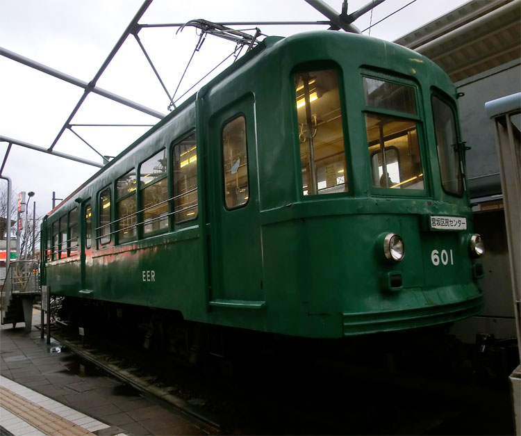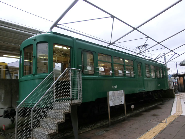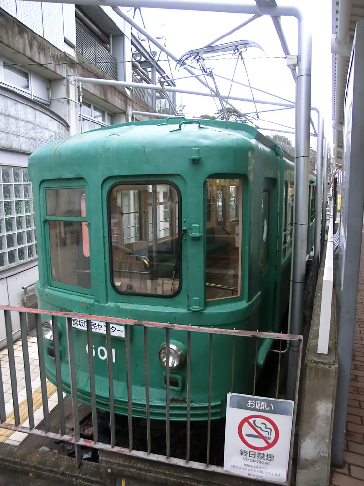 世田谷公園のD51 272号機の後は、宮の坂駅横の江ノ電601号車を訪問。 ・車歴 製造年 1925年 製造所 蒲田車両 1925年 玉川電気鉄道45号として製造される 1942年 デハ29号に改番 1953年 木製車を鋼製車体化し、デハ104号に改番 1969年 デハ87号に改番 1970年 江ノ電に譲渡、601号に改番 1990年4月27日 廃車 この電車は、大正14年に製造され、昭和44年まで渋谷〜二子玉川・下高井戸間(現東急新玉川線・世田谷線)を走り、その後江ノ島鎌倉観光株式会社(現江ノ島電鉄株式会社)に譲渡され主力電車として藤沢〜鎌倉間で活躍したが、江ノ電2000形デビューに伴い平成2年4月、65年にもおよぶ長い現役生活に別れを告げた。 (案内板より) 江ノ電に譲渡され、引退後玉電に里帰りして保存された車両。仕様は江ノ電時代のまま、車番も601号車として保存されています。こちら側はホーム通路からヒキがありません。 現在江ノ電もなかに保存されている651号車(カットモデル)と編成を組んでいた車両です。 訪問は夕方、車内は蛍光灯も点灯され大変綺麗に残っていました。 運転台も良い状態。 後ろ。こちらは比較的すっきりと見ることができます。 日も暮れてしまったので、この日はこれにて撤収。