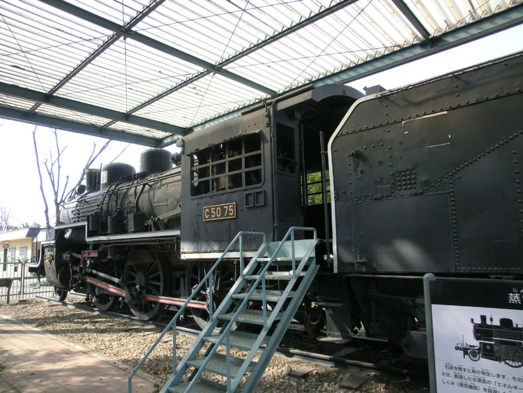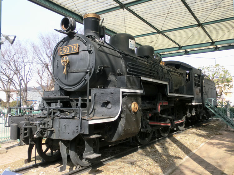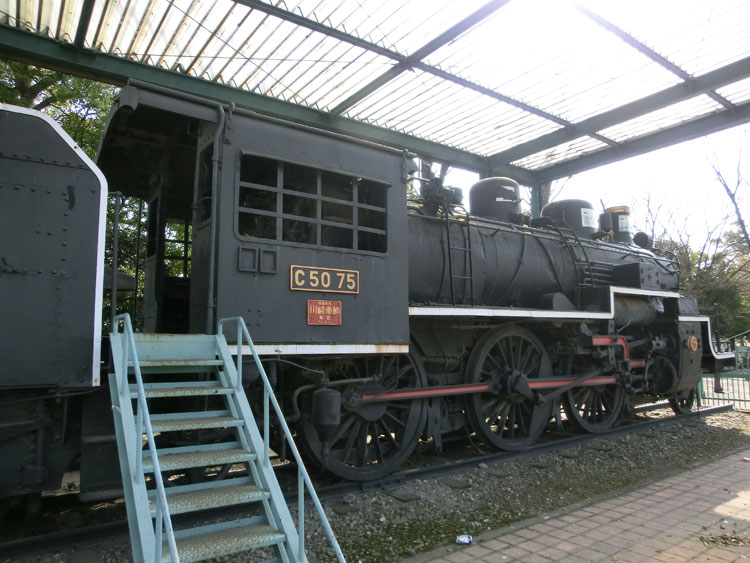 和光市第四小学校のC12 85号機の後は、一気に飛んで東十条へ。北鹿浜公園のC50 75号機を訪問。 ・車歴 製造年月日 1929年12月7日 製造所 川崎重工 1929年12月 豊岡機関区 1930年9月26日 湊町機関区 1932年1月30日 奈良機関区 1933年1月11日 湊町機関区 1938年10月1日 竜華機関区 1941年9月20日 亀山機関区 1971年3月8日 亀山機関区にて廃車 ここに展示されている蒸気機関車は、1929年(昭和4年)に製造されました。 1971年(昭和46年)に引退して足立区に来るまで、旅客・貨物用機関車として約200万km(キロメートル)も走り続けました。(案内板より) 関東では珍しいC50の保存機、こちらのカマは全く関東には縁が無く、末期は亀山機関区に配置されていた機関車です。柵内に保存されており、以前は立ち入ることもできたようなのですが、残念ながら現在は鍵が閉まったままです。 機体にはリベットが目立ちます。 片方の側面には製造銘板が残っていますが、片方は紛失していました。 後ろから。 人が近寄れないので、部品の紛失は無いと思われますが、機体の腐食が心配です。そろそろ整備され、綺麗な姿で公開してほしいカマですね。 この後は、上千葉砂原公園のD51 502号機を訪問。続きます。 PR