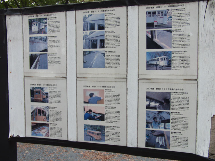 10月30日の話。この記事の続きです。 多摩川サイクリングの途中で、府中郷土の森にある交通遊園の保存車も訪問。まずはD51 296号機から。 ・車歴 製造年月日 1939年10月18日 製造所 川崎重工 1943年10月10日 坂町機関区 1957年11月1日 直江津機関区 1968年4月1日 長岡機関区 1969年8月16日 新鶴見機関区 1970年10月19日 青森機関区 1972年3月27日 青森機関区にて廃車 D51型蒸気機関車は「デゴイチ」の愛称で親しまれ昭和11年から昭和20年までに1115輛も製造された日本の代表的な蒸気機関車であります。 このD51−296は国鉄の発注により昭和14年10月川崎車輛株式会社が製造し、新潟、長野、東京、仙台、秋田各鉄道管理局に配属され、青森県内の奥羽本線を最後に引退するまで客貨輸送に活躍し、関東、東北地方の産業、経済、文化の発展に多大の貢献をしました。 この間30余年約242万キロメートル(地球を60周)を走行しましたが昭和45年から青森機関区に所属し、国鉄の動力近代化にともなって昭和47年3月引退したものです。 府中市では引退後のこの機関車が市民健康センターで静かな余生を市民に愛されながら送りつつ子供たちへの夢を育てるようまた教材として生かすため国鉄から貸与を受けここに展示したものであります。昭和47年12月 (案内板より) 補助灯つき、旋回窓の寒冷地仕様。現役時代は主に東日本を走行しました。3年ほど前に整備されたそうで、状態は良好そうです。 側面プレート周り。キャブ窓はオリジナルのものではないですね。なお動輪は塗装されており、刻印は確認できませんでした。 キャブ内も公開されています。柵が設置されており機器に触れられないようになっているため、良い状態でした。しかし右側の水面灯や一部の機器は紛失しています。 テンダー側から。後部灯が紛失。 D51の後ろには、EB10 1号機。 ・車歴 製造年 1926年(AB10として) 製造所 汽車製造・芝浦電気 1927年3月30日 東京機関区? 1932年10月1日 EB10に改番・改造 1933年6月30日 田端機関区 1972年2月 田端機関区にて廃車 EB101は、昭和2年に蓄電池機関車AB10として東京芝浦電気株式会社(前の芝浦製作所)と汽車会社によって製作され、日本国有鉄道で初めての蓄電池機関車として東北本線の王子・須賀間の貨物輸送に使用されたものです。 当時、同貨物線の付近には、危険物が貯蔵されていたため、火気をさけるため蒸気機関車にかえてこの蓄電池機関車が採用されたものでありますが、昭和6年に同線が電化されるに伴いAB10は電気機関車に改造され、現在のEB10形EB101に改められ(戦災を免れ戦後の25年間を経て)昭和46年1月までに44年間にわたり貨物輸送の電気機関車として活躍してきました。 その間、全国的に電化が発展し、電気機関車は大形化されましたが、EB101はその中にあって独特の凸形車体で国鉄最小の電気機関車として、とくに鉄道ファンの人気を集めています。 府中市では、引退後の機関車が、市民健康センターで静かな余生を市民に愛されながら送りつつ子供たちの科学への夢を育てるようまた教材として生かすため国鉄から貸与を受けここに展示したものであります。昭和47年12月 (案内板より) 王子の貨物線で活躍していた、小型電気機関車。 キャブ内は大変荒れており、機器は全て無くなった状態でした。 逆エンド側のプレートも紛失。D51の状態が良いだけに残念です。 少し離れたところには、都電6191号車。 ・車歴 製造年月日 1950年11月15日 製造所 日本車輌 1950年11月16日 南千住車庫 1970年8月1日 荒川車庫 1978年4月27日 荒川車庫にて廃車 この電車は、むかし「チンチン電車」の愛称で親しまれていた都電で昭和22年から昭和28年までの間に290輛製造されました。昭和30年頃には東京都内では40路線の系統の電車が運転されていましたが、自動車の普及に伴いだんだんその数が減って東京都内では現在、三ノ輪橋から早稲田までの区間の荒川線だけとなりました。この電車は、荒川線を最後に28年間も休まずに働き続けてまいりました。1日最高2300人位、1日平均1000人位の人々に利用され、任務を終えて荒川の車庫で休んでいるのを府中市が、よい子のみなさんに利用していただくために、昭和56年7月東京都交通局より貰受けました。みなさんのお友だちとして、いつまでも、かわいがってください。 (案内板より) 2008年の岩手・宮城内陸地震で亡くなられた岸由一郎さんも整備を行っていたそうです。ところどころ塗装が剥げているのは整備中なのでしょうか。 整備の記録も掲示されていました。 岸さんの心を受け継いで、今後も綺麗な状態で保存されることを願います。 最寄り駅は西武多摩川線の是政駅、徒歩約13分ほどです。 PR