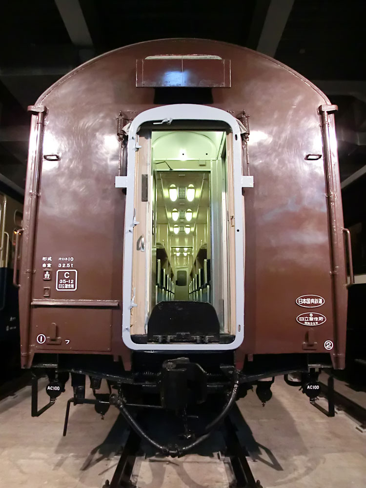 引き続き、リニア・鉄道館の保存車。今回は収蔵車両コーナーの右半分です。 キハ82 73。 ・車歴 製造年 1965年 製造所 日本車輌製造 1961(昭和36)年から運転を開始した特急形気動車キハ82系の先頭車。特急車両にふさわしい高い信頼性と優れた居住性を備え、またたく間に全国に非電化幹線に進出し、特急網を構築した。洗練された先頭部のデザインは、その後に登場するさまざまな車両にも大きな影響を与えた。(案内板より) 東海地区では「ひだ」「南紀」で運用されました。廃車後は美濃太田車両区で留置されてきました。 HMは「ひだ」。 キハ48036。 ・車歴 製造年 1956年 製造所 東急車輌製造 複数の車両を1つの運転台で総括制御を可能にしたキハ45000形式(後のキハ17形式)のグループの一つで、両運転台・トイレ付きのタイプ。1953(昭和28)年から製作されたこのグループは、単車運転が常識であった気動車の複数車両による運転を可能にして地方線区の輸送力を著しく向上させた。(案内板より) キハ10系統に分類される車両。晩年は茨城交通キハ113として活躍。廃車後は 佐久間レールパークで展示されていました。 オロネ10 27。 ・車歴 製造年 1960年 製造所 日立製作所 1955(昭和30)年から製作された10系客車グループの1等寝台車(現在のA寝台車)。この客車はヨーロッパの客車を参考にした設計により徹底した軽量化を達成。機関車などへの負担軽減、輸送力増強が実現した。ヨーロッパ調の車体デザインや客車で初めて採用した空気バネ付き台車の快適な乗り心地も好評だった。(案内板より) マイネ40 7。 ・車歴 製造年 1948年 製造所 日本車輌製造 戦後に初めて製造された1等寝台車。寝台をレールと平行に配置した「プルマン式」と呼ばれるものと、2人用個室4室を備えた豪華な設備。1948(昭和23)年に21両が製造され、東京〜九州間に運転された急行などに使用した。1955(昭和30)年に1等寝台が廃止されてからは、マロネ40形式2等寝台車となった。(案内板より) オハ35 206。 ・車歴 製造年 1941年 製造所 日本車輌製造 戦前・戦後に製作された3等客車で、国鉄鋼製客車の標準スタイルを確立した車両。1939(昭和14)年から1949(昭和24)年までの間に1308両が製作された。ガラスの製造技術の進歩によって1000mm幅の大窓を安価に3等客車で使用可能となった。明るい室内は評判となった。(案内板より) オヤ31 12。 ・車歴 製造年 1937年 製造所 田中車輛工場 「建築限界測定車」は、車体の周囲に接触式のセンサーを搭載し、走行しながら建築物の支障確認ができる構造となっている。新たに線路を敷設したとき等に使用した。この車両は、1959(昭和34)年にスハ32形式客車からの改造によって誕生した。(案内板より) スニ30 95。 ・車歴 製造年 1929年 製造所 大阪鉄工 鉄道省が初の鋼製客車として1927(昭和2)年から製作したオハ31系客車グループに属する荷物車。荷物車とは旅客の手荷物等を専門に運搬する車両で、貨車ではなく客車の一種とされている。鋼製になったことで車体強度が増した。(案内板より) 次回は最後!屋外展示の車両をご紹介します。続く。