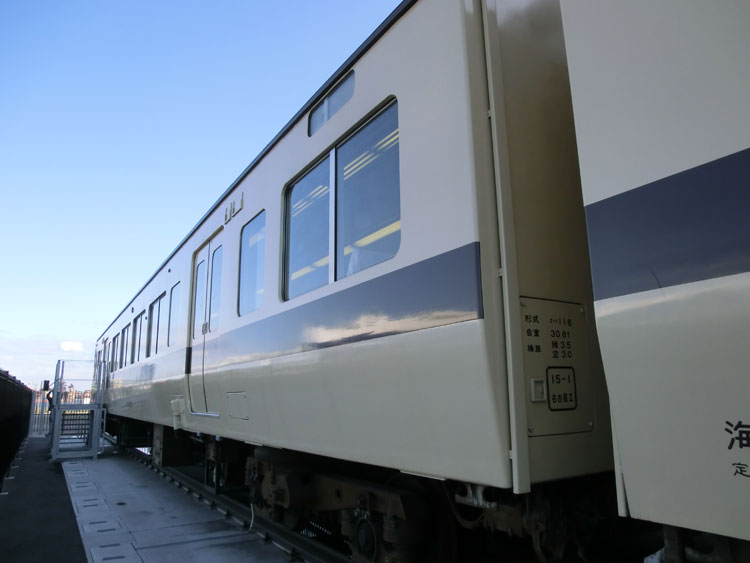 引き続き、リニア・鉄道館の保存車。最後は、屋外展示の保存車です。 ケ90号機。 ・車歴 製造年月 1918年12月 製造所 大日本軌道 1918年 東濃鉄道 1926年 ケ90に改番 1930年 廃車 1918(大正7)年に新多治見〜広見間で営業を開始した東濃鉄道で使用された蒸気機関車。線路幅は通常よりも狭い762mmの軽便鉄道と呼ばれていた路線で使用された。 新多治見〜広見間は1926(大正15)年に鉄道省に買収されて、ケ90形式も鉄道省所属の機関車として、1928(昭和3)年に太多線が1067mmに改軌されるまで使用された。 (案内板より) 廃車後は研修用として残され、ボイラーの切開が行われました。JR東海研修センターで保存されてきました。 キャブ内。当時の面影はありませんね。残念。 小さな機体。 続いて、117系3両。 117系は1980(昭和55)年1月に、関西圏の新快速電車として運転を開始。従来の近郊形電車とは別格の居住性を提供し、「シティライナー」の愛称で親しまれた。1982(昭和57)年3月には名古屋地区でも運転を開始し、「東海ライナー」の愛称がつけられた。(案内板より) クハ117−30。 ・車歴 製造年 1982年 製造所 近畿車両 HMは「新快速」。現在も東海・関西地区で快速以下の列車を中心に運用されています。 車内。 運転台。 後ろから。 続いて、モハ117−59。 ・車歴 不明。 車内。 ホーム側から。 クハ116−209。 ・車歴 不明。 正面から。 車内。 運転台。 車両後部から。 ホーム側から。 これにて、リニア・鉄道館の保存車は終了!大変長くなってしまいました。 この後は、名古屋駅へ。ほんの少しだけ、撮り鉄します。続く。