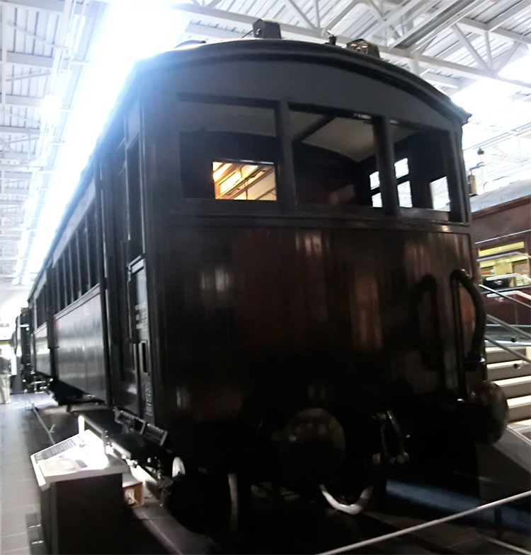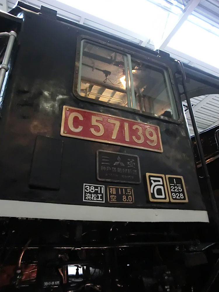 前回に引き続き、リニア鉄道館の保存車をご紹介します。今回は在来線コーナーの右端の列の保存車。 ED11 2号機。 ・車歴 製造年月 1923年8月 製造所 ゼネラル・エレクトリック 1960年〜 浜松工場入換機として使用 1979年 浜松工場にて廃車 東海道本線の東京〜国府津間電化と、横須賀線の電化に備えて、1923(大正12)年にアメリカのゼネラル・エレクトリック社から輸入した小型電気機関車のうちの1両。 まだ電気機関車を国産することができなかった鉄道省が、さまざまな形式を試験的に輸入したうちの1形式で、晩年は横浜工場で構内入換用として使用した。(案内板より) 佐久間レールパークで展示されていた車両、屋外保存でしたが良好な状態を保っていました。 側面プレート。 キャブ内を覗いてみます。状態は良さそうです。 2エンド側。 上から。 続いて、ED18 2号機。 ・車歴 製造年月日 1924年2月20日(1055号機として) 製造所 イングリッシュ・エレクトリック 1924年2月20日 1055号機として使用開始 1931年 ED17 16号機に改番 1955年2月5日 豊橋機関区 1959年1月16日 西国立機関区 1960年1月14日 中部天竜機関区 1979年 浜松工場にて廃車 1992年〜 動態復元の上、イベント列車で活躍 2005年8月 浜松工場に休車の上保管 東海道本線電化に備えて、1923(大正12)年にイギリスから輸入された1040形を、飯田線で使用するために改造して誕生した2両のうちの1両。 台車の中央に遊輪を1軸追加し、それぞれの車軸にかかる重量を軽減。飯田線などの支線での使用を可能にした。1970年代に廃車となった後、1992(平成4)年にJR東海が2号機を整備して復活。2005(平成17)年までイベント列車などで使用した。(案内板より) 飯田線のトロッコファミリー号で、比較的最近まで活躍してきたED18 2号機。廃車後は、浜松工場で保管されてきました。こちらも状態は良好です。 側面プレート。 キャブ内、こちらの車両は見やすいですね。 ホーム側から前面。 2エンド側。 続いて、C57 139号機。 ・車歴 製造年月日 1940年9月4日 製造所 三菱重工業 1940年9月4日 使用開始 1945年4月 糸崎機関区 1947年10月 名古屋機関区 1969年9月30日 関西本線名古屋口 蒸気機関車さよなら列車牽引 1971年4月17日 名古屋機関区にて廃車 主要路線で運転される旅客列車を牽引することを目的に、1937(昭和12)年から総計201両が製作された蒸気機関車。 ボイラー、動輪などの改良によって、中型の機関車でありながら高い性能を誇る。扱いやすい機関車としてその足跡は全国に及んだ。直径1750mmという大きな動輪と細身のボイラーは、バランスのとれた美しさでも評価が高い。(案内板より) 現役時代はお召し列車も牽引したカマ、お召し装備で展示されています。以前はJR東海研修センターで保存されていました。準鉄道記念物に指定されています。 ホーム側から。 動輪は磨き上げられており、刻印も確認できました。ライトアップされており観察しやすいです。 プレート周り。 キャブ内の状態も良好そうです。 後ろから。 上から。 続いて、ホジ6005。 ・車歴 製造年月日 1913年5月13日 製造所 汽車製造 1918年3月9日 直方機関区 1944年1月12日 直方機関区にて廃車 名古屋鉄道蒲郡線に譲渡される 博物館明治村に展示・保存される 蒸気動車とは、車体の片隅に蒸気機関車と同様の走行装置を備え、蒸気機関車と客車の機能を1両に集約して1両運転を可能にした車両。明治末期からローカル線で使用され、当時は「自働車」と呼ばれていたが、のちに「汽動車」と名称が改められた。 ホジ6014は1913(大正2)年製。「工藤式」と呼ばれる機関走行部の脱着機構を備えた車両で、1943(昭和18)年まで関西本線などで運転された。(案内板より) 当時は画期的だったであろう、蒸気機関を持つ客車という、不思議な車両です。国鉄での運用終了後名鉄で活躍、その後博物館明治村で保存されていました。鉄道記念物に指定されています。 車内は、一見ごく普通な普通車のような印象。 しかし、両端にはキャブを備えます。 博物館明治村での保存時代は「キハ6401」を名乗っていましたが、リニア鉄道館に移転に伴いホジ6005に復元されました。 反対側。 今回はここまで。次回は、右から2列目の保存車をご紹介。続きます。