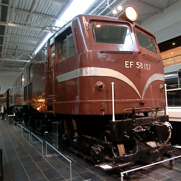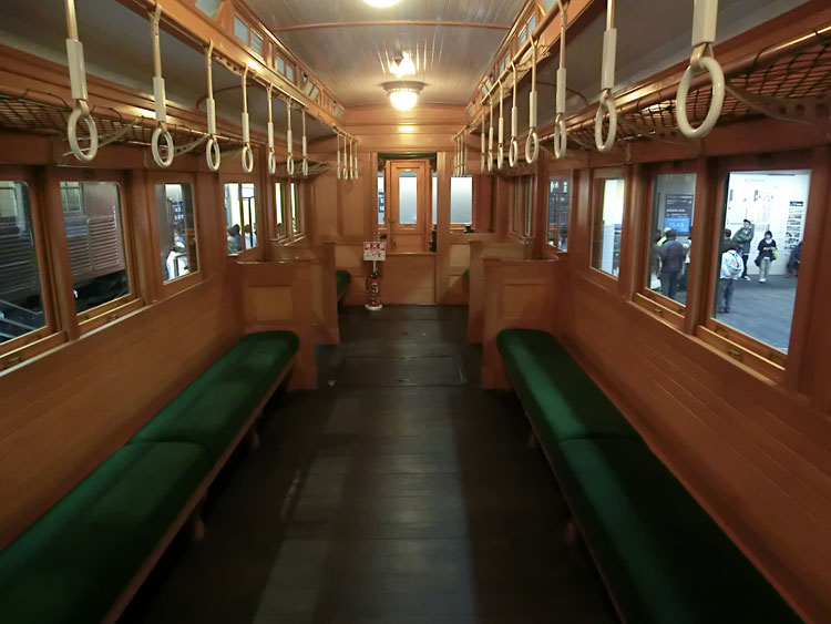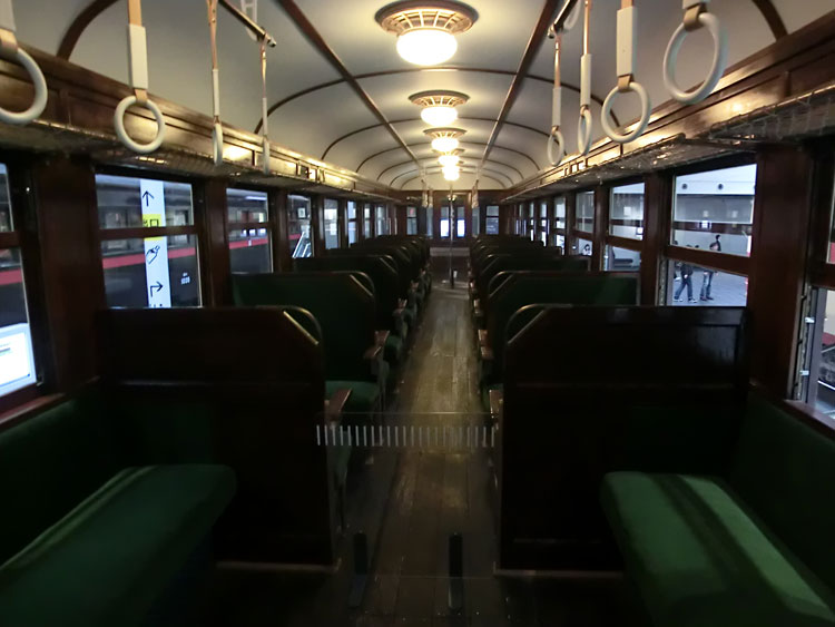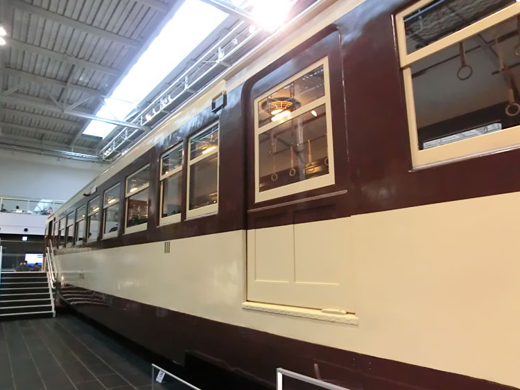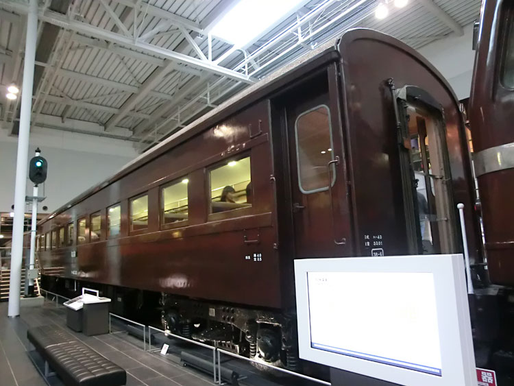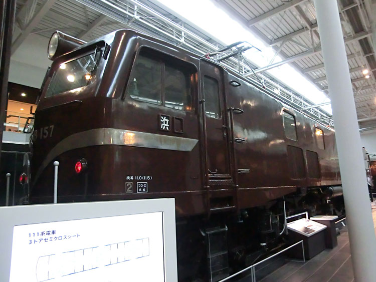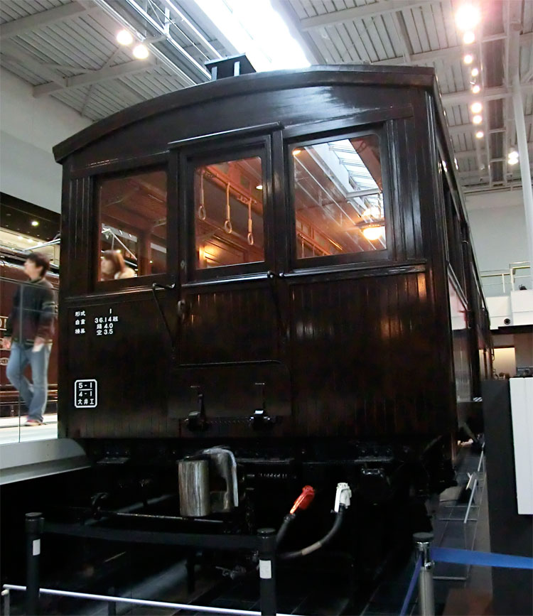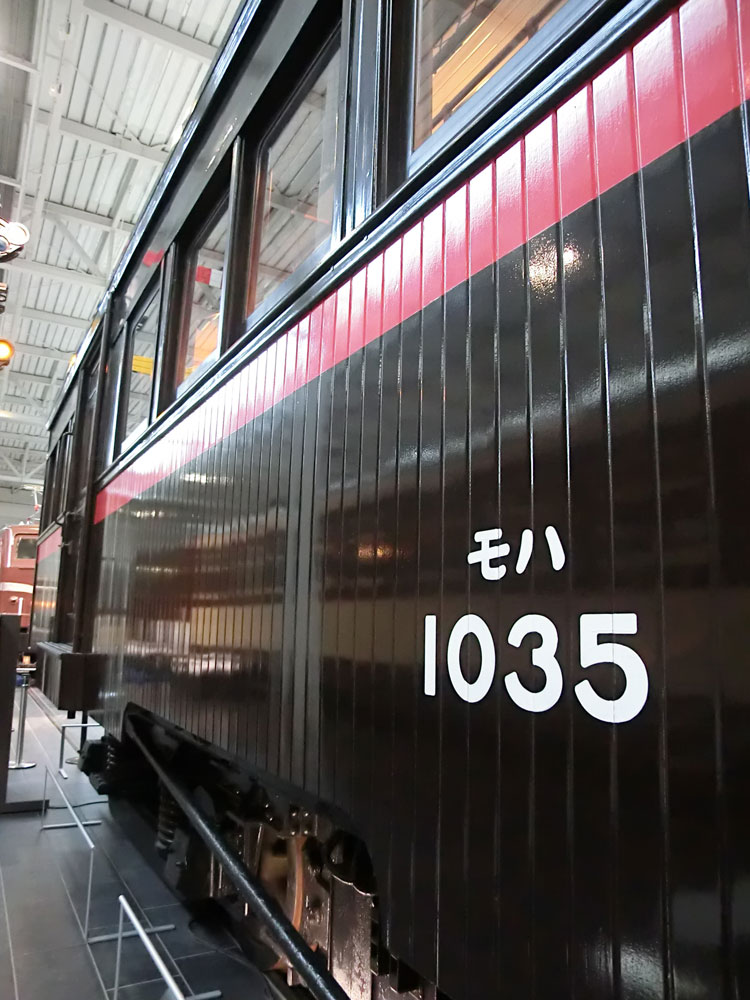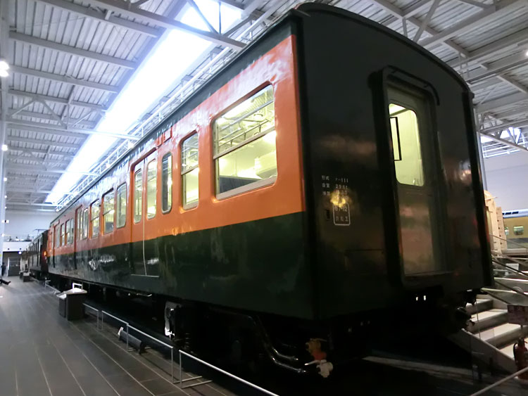 前回に引き続き、リニア・鉄道館の保存車をご紹介します。今回は右から2列目の保存車。 モハ1035号車。 ・車歴 製造年 1922年 製造所 汽車製造 1953年 大井川鐵道に払下げ 1970年 廃車 鉄道省が1921(大正10)年から製作した木製車体の電車。 それまでの木製電車と違い運転室が仕切り板にて独立。京浜線、中央線などで運転され、通勤電車の標準となった。1938(昭和13)年に三信鉄道(現飯田線)、1953(昭和28)年には大井川鉄道へ払い下げられ、その後1994(平成6)年にJR東海が譲り受け、鉄道省時代の姿に復元した。(案内板より) 以前は千頭駅に保存されていましたが、1995年にモハ1035に復元のうえ伊那松島で保管されてきました。木造車体は痛みやすかったのか、今回の収蔵でもかなり修復が行われたようです。 車内。綺麗な状態です。 反対側から。 続いて、EF58 157号機。 ・車歴 製造年月日 1958年2月25日 製造所 三菱重工 1958年2月25日 浜松機関区 1984年2月1日 下関機関区 1985年9月30日 下関機関区にて廃車 1988年 車籍復活のうえイベント列車に使用 2008年3月31日 廃車 1946(昭和21)年から172両が製作された旅客用電気機関車。 1952(昭和27)年生増の後期形から流線形車体を採用。のちに初期形も流線形車体に改良された。特急列車の牽引にも使用され、戦後の花形として活躍。東海道本線の全線電化完成時には特急「つばめ」「はと」を牽引し、その後はブルートレインから貨物列車まで幅広く活躍した。(案内板より) ぶどう色のゴハチ、61号機は基本公開されないので、いつでも見られるのはここだけですね。 側面プレート。 キャブ内。 2エンド側はスハ43と連結された状態です。 ホーム側から1エンド側。 続いて、スハ43 321。 ・車歴 製造年 1954年 製造所 新潟鐵工 戦後に新設計され、従来車両に比べ著しく居住性が改善された3等客車。従来客車よりもシート間隔を15mm拡大。天井灯は従来方式の1列から2列として車内が明るくなった。この他窓側座席への肘掛けの新設や通路側座席への頭もたれの新設など居住性を重視した。新製直後は特急「つばめ」にも使用された。(案内板より) EF58 157と連結した状態で展示されています。 サボは「名古屋行」が入っています。 車内も、座席に座ることができないこともあって良い状態です。 次回は、右から3列目・4列目の保存車をご紹介します。続く。