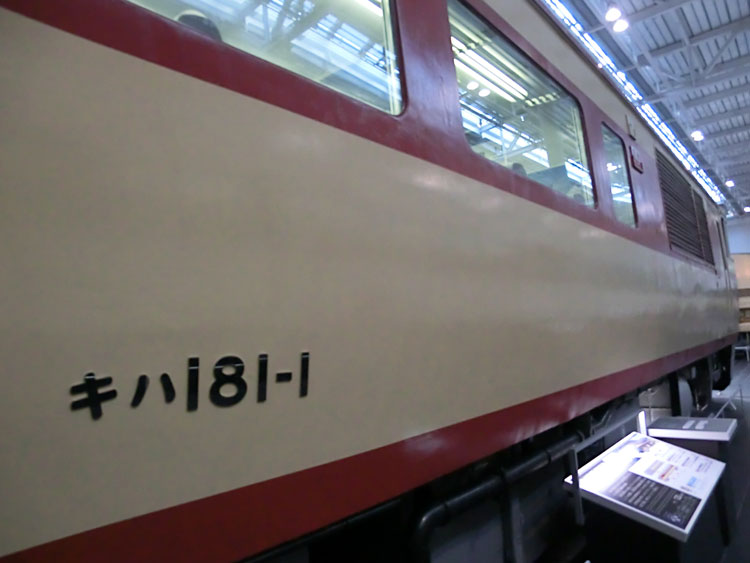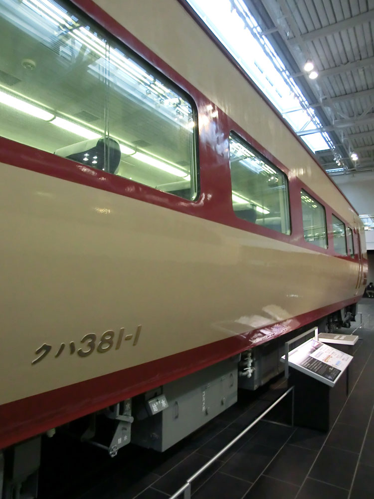 引き続き、リニア・鉄道館の保存車です。 まずは右から3列目。モハ52004号車。 ・車歴 製造年 1937年 製造所 川崎車両 京阪神間の急行用として、1936(昭和11)年から1937(昭和12)年にかけて12両製造された電車の先頭車。 車体は当時の世界的な流行となっていた流線形デザインを採用し「流電」の愛称でも親しまれた。明るいツートンカラー、固定編成での運転も、それまでの国鉄(当時鉄道省)電車の常識を覆すものとして大きな話題となった。晩年は、飯田線で使用していた。(案内板より) 流線形、現代に通用するデザインですね。これが昭和初期に走っていたとは驚きです。以前は佐久間レールパークで展示されていました。クモハ52形はもう一両、モハ52001がJR西日本吹田工場に保存されており、イベント等で公開されています。 収蔵にあたり、佐久間レールパーク時代よりも、出来るだけ原形に復元したそうです。 車内。 2階から。 続いて、クモハ12041号車。 ・車歴 製造年 1927年 製造所 汽車製造 2002年2月28日 伊那松島運輸区にて廃車 鉄道省が製造した最初の鋼製電車モハ30形式を改造し、1両でも運転が可能なように車体の両端に運転台を取り付けた形式。 クモハ12041は幾度かの改造を経た車両で、主に京浜線で使用された後、国鉄浜松工場で入換牽引に使用されていたクモヤ22112を1987(昭和62)年に旅客用に再改造、2002(平成14)年にまで使用した。(案内板より) クモハ12形にはいろいろと形態がありますが、こちらは最後まで残った車両。飯田線でイベント用に使われました。廃車後は、佐久間レールパークで展示されていました。 リベット打ちの車体。 反対側はモハ52004と連結。 車内。 運転台。 ホーム側から。 続いて、 クハ111−1。 ・車歴 製造年月日 1962年5月28日 製造所 日本車輌製造 走行音が静かなカルダン駆動など、斬新なシステムをいくつも採用した「新性能電車」と総称された電車群の中で、国鉄が東海道本線などの中距離輸送用として開発した111系電車の先頭車。 1962(昭和37)年に運転を開始し、電動車は後に出力が増強されて113系へ発展、近年まで輸送の一線で活躍した。 (案内板より) デカ目の111系トップナンバー。現在営業線上には、113系に改造された車両しか残っていません。以前は佐久間レールパークで展示されていました。 車内。 運転台。 車番。1が4つ並んでいます。 後ろから。 ホーム側から。 続いて、右から4列目。 クハ381−1。 ・車歴 製造年 1973年 製造所 川崎重工業 曲線区間を通過する際に車体を内側に傾けることで、より高速の運転を可能にした「振子式」システムを採用した特急形電車。 381系は1973(昭和48)年の中央本線・篠ノ井線電化時に名古屋〜長野間の特急「しなの」としてデビュー。曲線通過速度を25km/h向上させる優れた性能を発揮、「振子式車両」の実力を示した。(案内板より) 先日再び国鉄色が復活、こうのとりの183系を置き換えつつある381系のトップナンバー。廃車後は、美濃太田車両区で長らく留置されていた車両。 正面から。 車内。 こうして見ると、車体幅を絞っているのがよく分かりますね。 側面幕は「特急しなの 名古屋」を表示。 後ろから。 2階から。 続いて、在来線車両コーナーは最後!キハ181−1。 ・車歴 製造年 1968年 製造所 富士重工業 1968(昭和43)年から158両が制作されたキハ181系特急形気動車の先頭車。 従来型車両から大幅にパワーアップした500馬力のエンジンを搭載し、勾配区間の高速運転を実現。山岳路線を走る気動車特急のイメージを一新した。名古屋~長野間運転の特急「しなの」でデビュー。北海道を除く全国で活躍し、特急のスピードアップに貢献した。(案内板より) 381系の一世代前に「しなの」に使用されていた車両。先日までJR西日本所属の車両が「はまかぜ」等で最後の活躍をしていましたが、キハ189系に置き換えられました。一部の車両はミャンマーに譲渡されました。こちらも、廃車後は美濃太田車両区で留置されていました。 保存された車両は、こちらのキハ181−1と、最後まで「はまかぜ」用に残っていたキハ181−12(津山で保存)のみ。100両以上が製造された割には、呆気ない・・・。 車内。 運転台。 後ろから。 今回で在来線車両コーナーは終了。次回からは新幹線車両コーナーをご紹介します。続く。