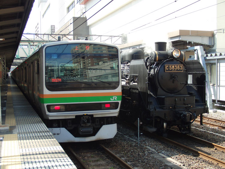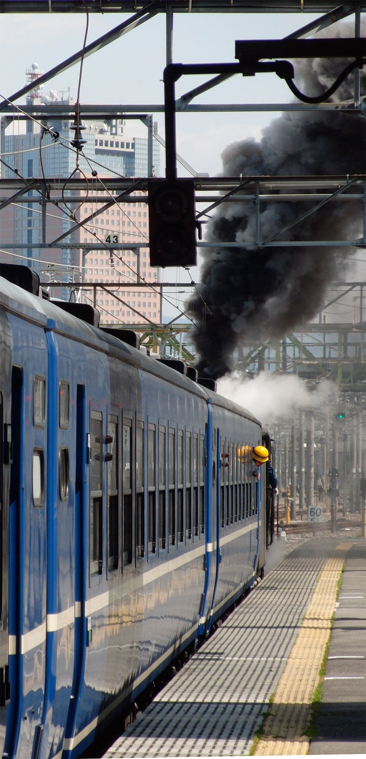この日は、3月27日に大宮総合車両センターを出場したC58 363号機の試運転が上越線で行われるということで、撮影してきました。 今回の試運転は、C58 363号機の秩父鉄道受け渡し前の最終確認のためのもので、高崎の12系6両が使用されました。同機が上越線を走行するのは実に6年振り、しかも次に見られるのも約6年後ということで、気合いを入れて追っかけする計画を立てました。 いつものように大宮から高崎線に乗って高崎に着くと、E231系とC58が並んでいました。この並びも意外と新鮮ですね。普段は熊谷付近で並走している仲ですね。 井野〜新前橋間で1発目。C58に青い客車は新鮮! さて、追っかけのために続行の電車で新前橋に到着すると・・・出発したはずのC58が停車中。 どうやら、あまり調子が良くないらしい・・・機関士さんの方達が点検作業を行っている横で、邪魔にならないように観察。 一時は「高崎まで戻すか?」なんて会話も聞こえてきましたが、なんとか発車。爆煙で調子良さそうだったのに、これが同機を見る最後となろうとは・・・ 後続の上越線に乗って岩本付近で2発目・・・なのですが、なぜか試運転は姿を現しません。そんなこんなしているうちに後ろから新津工臨が通過。牽引はEF64−1001。 さすがにおかしいな、と携帯で情報を調べてみると・・・なんと渋川〜敷島間で立ち往生!下り線を塞いでしまっているようです。まぁすぐに直るだろうと待っているうちに、高崎行きが発車。・・・これに乗ってればもっと早く帰れたのですが。 結局、故障は復旧せず、高崎からDD51の救援が出ることになり、上越線は水上駅に車両が無いので渋川駅までバス代行。1時間ぐらいかかりました。バスの車内から事故現場が見えるかなぁと思いましたが、残念ながら見れず。 渋川からは吾妻線の高崎行きに乗り換えということで、渋川のホームに入って待っていると、高崎からの救援、DD51 897号機が到着。 2分ほど停車して、C58を助けに向かいました。 高崎駅にやっと戻ってくると、配給に使われたEF81−140号機が上越線抑止の影響で停車中。 この後は、そのまま帰宅しようと思っていましたが・・・武蔵浦和でMue−Trainに遭遇。続きます。 PR コメントを投稿する