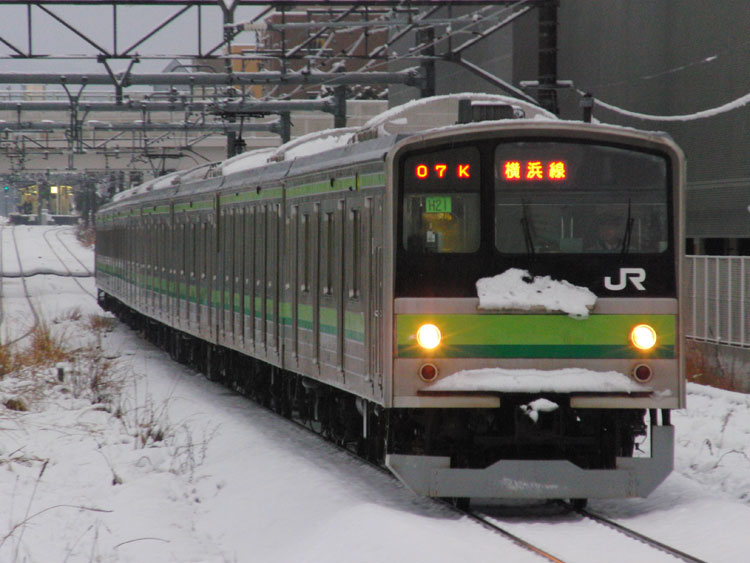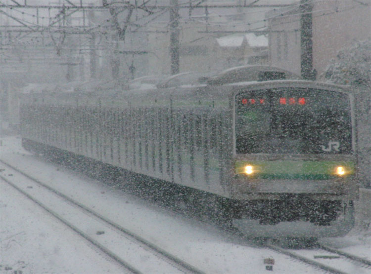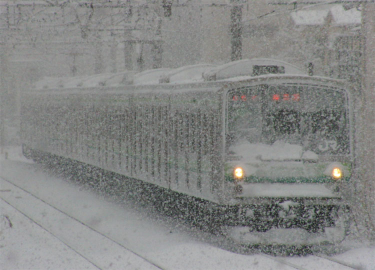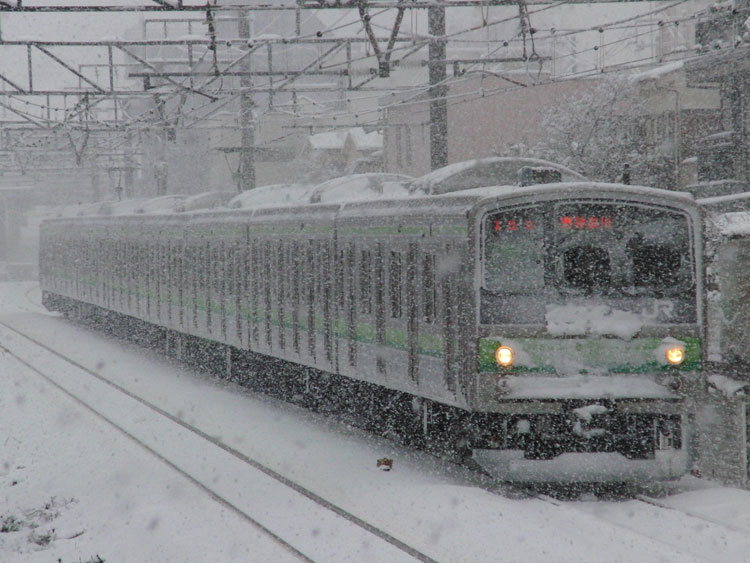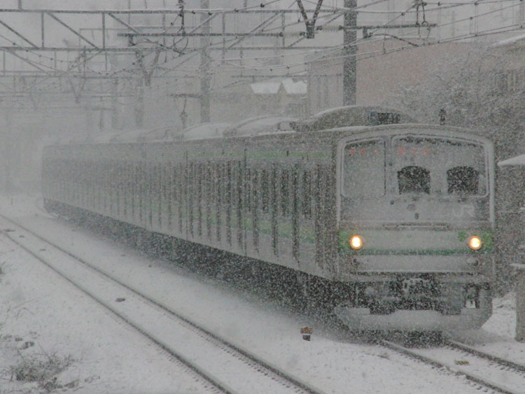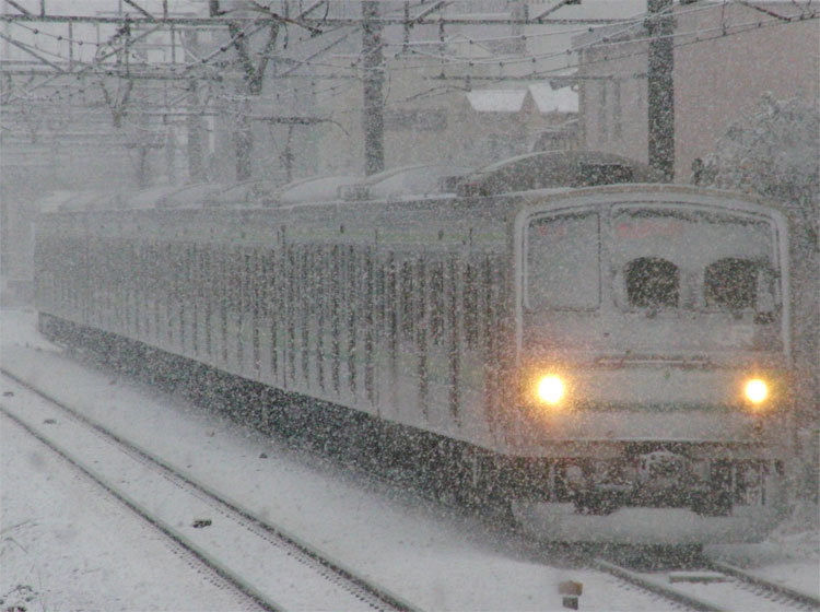 この日は、低気圧接近により首都圏でも大雪となり、年に数回の雪景色が見られました。 今回も横浜線の記録に徹することに。午前中から激しく雪が降ったのは珍しいですね。雪のせいで編成番号は大半が確認できませんでした。 ↑1038K 205系H**編成 快速"桜木町行" ↑1102K 205系H10編成8B 各停"桜木町行" ↑1104K 205系H6編成8B 各停"東神奈川行" ↑1124K 205系H26編成8B 快速"桜木町行" ↑1134K 205系H**編成8B 各停"桜木町行" ここまで撮影して一旦帰宅。雪がさらに降り出し、遅延が発生し始めたということで再出撃。 一発目に来た列車は何と立ち往生。この場所で5〜6分止まってましたね。 ↑1304K 205系H6編成8B 各停"桜木町行" 後続の1302Kは約10分遅れ。 ↑1302K 205系H10編成8B 各停"東神奈川行"(+10min) 軽く吹雪いてきており、駅ではしばらく上りが来ないことをアナウンスしていたので帰宅して、雪が収まってきたのでまたまた出撃。 ↑1314K 205系H**編成8B 各停"東神奈川行"(+24min) 最後は雪が止んだ夕方の淵野辺駅にて。 ↑1606K 205系H21編成8B 各停"東神奈川行"@淵野辺 新型車両E233系も来年春にデビューが予定され、もしかすると試運転では来年から雪景色が見られるかもしれません。 PR コメントを投稿する