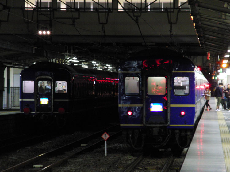 横川SAで仮眠を摂りまして、高崎市内で夕食を済ませた後は深夜の高崎駅へ。ニコニコ超会議号で使用された客車の返却も兼ねて、上野〜青森間で「リバイバル鳥海号」が運転されました。 今回も警察登場など大混乱になっていましたが、事前の情報よりも早く到着したので、到着後は割と落ち着いていたかなと思います。もちろん罵声はありましたが。この時は大宮停車でしたが、最近はJRの方でも通過させてみたり被らせてみたり。 ↑9011レ EF81-138[青]+24系25形客車6B "寝台特急リバイバル鳥海号"@高崎 そういえば一昨日の金曜日にも"鳥海"が走りましたが、企画名がなぜか「急行リバイバル鳥海号で行く〜」であったり、上野〜長岡間はHM無しのEF64牽引だったりと、この時と違い適当なものだったようで。HMが付けば撮りに行きましたが…ねぇ。もちろん、現役時代からマーク無しだった列車は別ですが、こうしたリバイバル列車においてHMの有無は大きいですよ。 ↑同上 そして停車中には「あけぼの」が到着、近年は本当に珍しくなったブルトレの並びを撮影することができました。どちらもイラストマーク入りでこれは素晴らしい! ↑同上&2021レ EF64-10**[長岡]+24系25形客車9B"寝台特急あけぼの"@高崎 あけぼの発車後に鳥海単体でも。 ↑同上(後追い) 24系側にも幕が入っているのか、テールマークはシールではない「鳥海」でした。 ↑同上(後追い) これにてこの日の撮影は終了し、帰宅。 PR コメントを投稿する