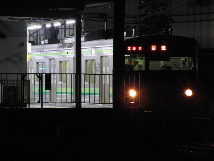 この日は、例年通り8月15日に「諏訪湖祭湖上花火大会」が開催されましたが、夕方から集中豪雨が中央本線が壊滅。花火大会も開始30分で中止となり、大量の乗客が上諏訪駅に取り残されることになりました。その後運転を再開したものの、残った特急列車は大幅に遅れ、各線で救済臨が運転されました。横浜線でも例外なく臨時列車が運転されるとの情報を聞きつけ淵野辺へ。 03Kと29Kの運用をトレードする形で、八王子駅停泊となるH8編成を使用して町田行きが運転、町田からは2番線に停泊していたH25編成が回送で八王子に下りました。 ちょうど臨時町田行きと臨時回送の交換駅が淵野辺でした。深夜2時過ぎに旅客列車が運転されたのは終夜臨以来でしょうか、深夜にもかかわらず各駅で対応された駅員の方々と乗務員の皆様、お疲れさまでした。 ↑9602K 205系H8編成8B 臨時各停"町田行"&回9629K 205系H23編成8B 臨時回送@淵野辺 ↑回9629K 205系H23編成8B 臨時回送@淵野辺 臨回の発車を見送って撤収。 PR コメントを投稿する