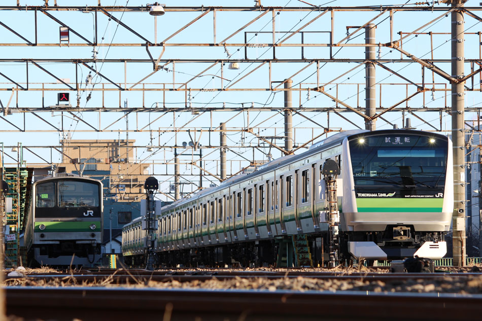 1月後半の横浜線関連の記録です。 ・18日 836KはH28編成が充当。 ↑836K 205系H28編成8B 快速"大船行"@相原〜橋本間 17日から始まったE233系の線内試運転が土曜日であるこの日も行われました。午前中に橋本まで下り、橋本派出での乗務員訓練の後、夕方東神奈川に戻るダイヤで、まともに順光になる場所が無いという非常に撮影者泣かせな試運転でした… ↑試9554K E233系H017編成8B 試運転 この日はさらにEast-iEの検測もありました。 ↑試9394M E491系"East-iE"3B 検測 ・19日 まずは早朝から雪山バック。 ↑707K 205系H22編成8B 各停"橋本行" ↑748K 205系H19編成8B 各停"東神奈川行" 836KはH16編成が充当。 ↑836K 205系H16編成8B 快速"大船行"@町田〜成瀬間 前日に続きこの日もH017の試運転が行われました。成瀬・橋本派出(出庫)・高砂踏切にて。 ↑試9955K E233系H017編成8B 試運転@成瀬 ↑試9554K E233系H017編成8B 試運転@橋本派出 ↑同上@橋本〜相模原間 回9223Kの運転もありました。 ↑回9223K 205系H5編成8B 臨時回送@町田 ↑同上@橋本 ・22日 新津からの第一陣となるH001編成の配給が新津〜大船間で運転されました。 ↑配9774レ EF64 1031[長岡]+E233系H001編成8B 配給@新秋津 ・26日 836KはH23編成が充当。表示タイミングが微妙で残念。 ↑836K 205系H23編成8B 快速"大船行"@長津田〜十日市場間 この日はH26編成最後の終日運用でした。翌27日の47K(1)を以て運用を離脱し、茅ヶ崎に疎開されました。 ↑914K 205系H26編成8B 各停"東神奈川行"@十日市場〜中山間 ↑1015K 205系H26編成8B 各停"橋本行"@鴨居〜中山間 ↑1215K 205系H26編成8B 各停"八王子行"@新横浜〜小机間 ・28日 地下道完成に伴い、2月9日で廃止となる矢部踏切を通過するH017編成試運転。営業運転では見ることができないシーンでした。 ↑試9955K E233系H017編成8B 試運転@矢部踏切 ・30日 回9638Kが運転されました。さすがに冬の時期は日の出前後の運転ということもあり露出がありません…。 ↑回9638K 205系H14編成8B 臨時回送 1月後半の撮影分は以上になります。 PR コメントを投稿する