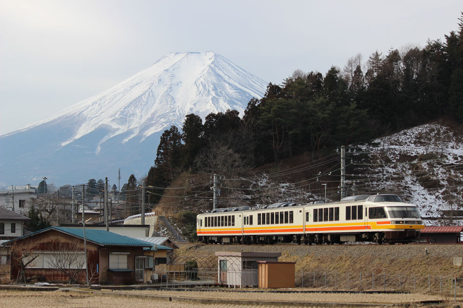 今年こそ最新の撮影分まで追いつきたいのですが…さすがに昨年ほど撮影に出かけることはないと思いますので、コツコツ時間を見つけて、何とか少しずつでも差を縮められればと思っております。 それでは引き続き、約11ヶ月遅れの昨年の撮影分を更新します。 1月25日の話。 この日は、2002年より富士急で活躍してきた2002編成が、置き換えにより引退することを記念してJR時代の「パノラマエクスプレス・アルプス」塗装に復刻されたということで、富士急行線で撮影してきました。 富士急2000形は、165系を改造し、国鉄→JRで運用されたジョイフルトレイン「パノラマエクスプレス・アルプス(以下PEA)」が、2001年にJRで引退後に譲渡され、塗装を変更した上で「フジサン特急」で使用されてきた車両。小田急20000形"RSE"を改造した後継車両8000系の導入により、まずは2002編成の引退が決まりました。 なるべく細部までPEA時代を再現した富士急の気合いの入りっぷりもあり、各撮影地は多くの賑わい。まずは富士山を背景に撮影できる寿〜三つ峠間に向かいますが、富士山に向かって走る河口湖行きが先に来るので三つ峠寄りのカーブへ。 もともと6両編成だったものを3両ずつの2編成に分割しているため、展望車の数は2両だけなので、こちらの2002編成の河口湖方は貫通型。 ↑701レ 富士急2002F(PEA塗装)3B 特急"フジサン特急1号"@三つ峠〜寿間 富士急行線には元京王5000系(台車は営団3000系の廃車発生品)である1000形が所属していますが、その内1001編成は京王塗装にリバイバルされており、車番も当時の"5863"と"5113"を再現しています。 ↑9レ 富士急1001F(京王5000系塗装)2B 普通"河口湖行"@同上 上り列車が来るので富士山バックの場所に移動、元205系の6000系が来ました。京葉線で活躍した量産先行車と編成が譲渡された上で2012年2月29日から運用され、1000系の一部の置き換えが行われました。(当時の甲種輸送の記事はこちらとこちら。) ↑12レ 富士急600*F(世界遺産HM掲出)3B 普通"大月行"@寿〜三つ峠間 午前中には、高尾からの中央本線直通列車も乗り入れてきます。当時は115系のスカ色でしたが、12月1日を以て豊田のM編成が全て運用離脱したことに伴い、現在では長野色の211系が乗り入れています。 ↑1453M 115系M4編成3B 普通"河口湖行"@三つ峠〜寿間 河口湖からのPEA折り返し。あいにくの曇り空でしたが、積雪した雄大な富士山を背に最後の活躍を続けるPEAを撮影できました。 ↑702レ 富士急2002F(PEA塗装)3B 特急"フジサン特急2号"@寿〜三つ峠間 後続の普通列車は"トーマスランド号"の5001F。現状では唯一の富士急自社発注車ですが、登場からまもなく30年。6000系での置き換えは無さそうですが、他の車両と連結が出来ないために共通運用が組めず、使い勝手の良いセミクロスシート装備の中古車が出たら危ないかな?とも思います。 ↑14レ 富士急5001F(トーマスランド号)2B 普通"大月行"@同上 富士山が雲に隠れる気配が無いので、富士山〜月江寺間に移動して引き続き富士山バックで撮影します。 ↑16レ 富士急6001F*3B 普通"大月行"@富士山〜月江寺間 ホリデー快速富士山1号と後続の下り普通は面縦で。木製架線柱がいい味出してます。 ↑8571M 189系M50編成6B 快速"ホリデー快速富士山1号"@月江寺〜富士山間 ↑73レ 富士急600*F(世界遺産HM)3B 普通"河口湖行"@同上 河口湖から折り返してきたスカ色、晴れるとド逆光になってしまうのでちょうどいい天気でした。 ↑4542M 115系M4編成3B 普通"高尾行"@富士山〜月江寺間 河口湖駅に移動。構内には富士登山電車の代走と合わせて、種車が205系量産先行車の6000系が集結! まさか富士山を横目に第二の活躍をすることになるとは、製造当初は思ってもみなかったことでしょう。 ↑富士急6002F&6003F&6004F 並び@河口湖(以上3点) その他河口湖駅の留置線には、ホリ快富士山2号まで待機となるM50編成、旧標準色リバイバルカラーの1202編成と、部品取り用として6000系と一緒に富士急にやってきた205系の中間車が留置されていました。 続いて、河口湖畔の「カチカチ山ロープウェイ」に乗って天上山公園から俯瞰。 ↑15レ 富士急5001F(トーマスランド号)2B 普通"河口湖行"@富士山〜河口湖間 ↑707レ 富士急2002F(PEA塗装)3B 特急"フジサン特急7号"@同上 最後は田野倉〜上大月間で。 ↑20レ 富士急6001F*3B 普通"大月行"@田野倉〜上大月間 ↑708レ 富士急2002F(PEA塗装)3B 特急"フジサン特急8号"@同上 これにて富士急行線から撤収し、帰りに中央本線を少しだけ撮影して帰宅。 この後パノラマエクスプレス・アルプス塗装の2002編成は、2月9日にさよなら運転が企画されていたものの、大雪のために中止に。結局その日は積雪により大月から動けず、翌10日に大月駅を脱出してひっそりとラストランを迎えたようです。お疲れさまでした。 PR コメントを投稿する