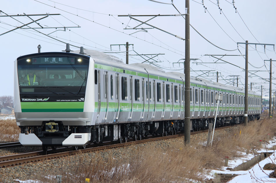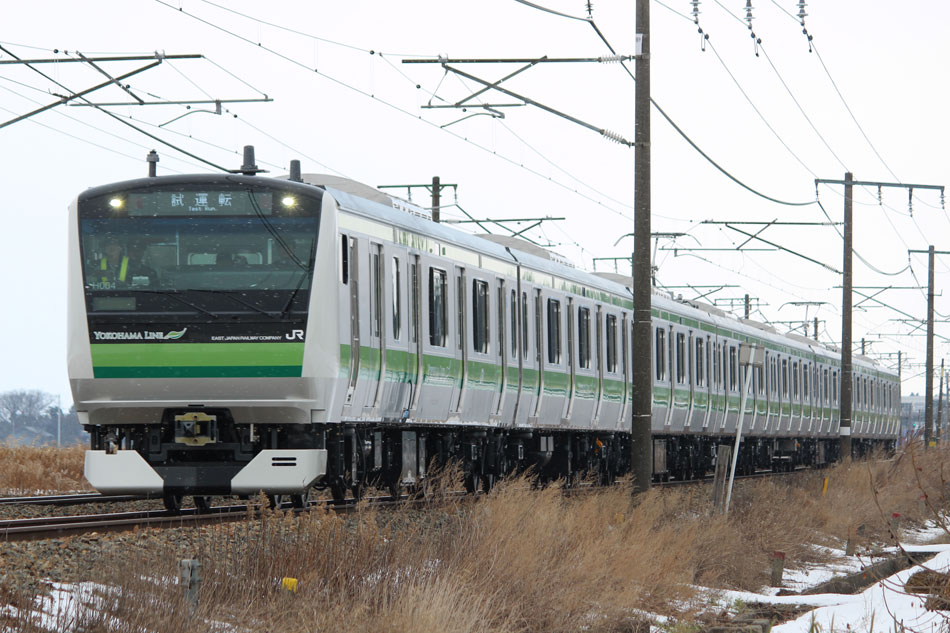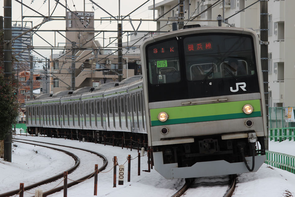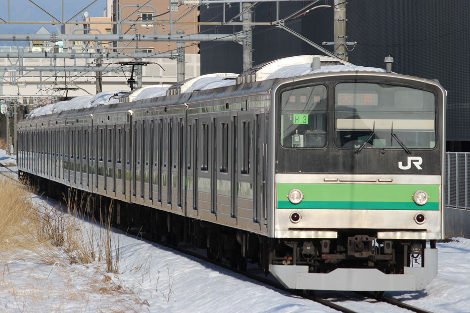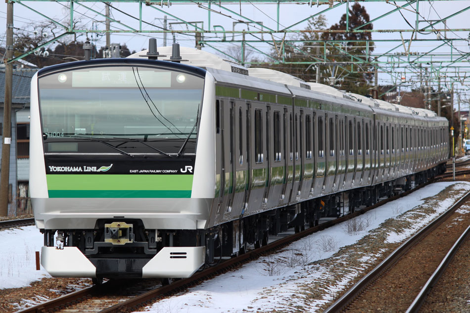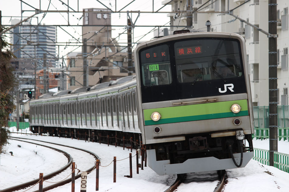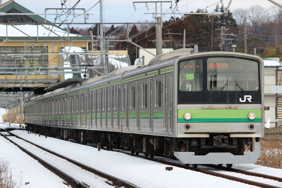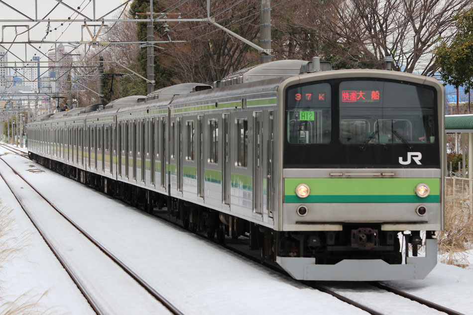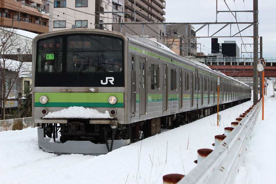 2月中旬の横浜線撮影分です。 ・11日 町田以北では8日に降った雪が融けずに残っていました。836KはH12編成が充当。 ↑836K 205系H12編成8B 快速"大船行"@相模原 橋本に移動、相原まで積雪状況を確認しつつ徒歩で雪×横浜線を何枚か。撮影中には雪がちらつく場面も。 ↑931K 205系H15編成8B 各停"八王子行"@橋本〜相原間 ↑951K 205系H14編成 各停"八王子行"@同上 ↑1050K 205系H14編成8B 快速"桜木町行"@相原〜橋本間 午後は川越車両センターに疎開したH002編成を見に行ったところ、数時間前に東大宮に移動したとのことで、東大宮で185系に囲まれるH002編成を撮影。翌日の高崎疎開を控えたハエ22編成に場所を開ける目的だったようで、翌12日にハエ22編成の高崎疎開後、東大宮から川越に戻っています。東大宮疎開はこの時だけ見られたシーン。 ・12日 H003編成の配給が新津〜大船間(武蔵野線経由)で運転されました。 ↑配9774レ EF64 1030[長岡]+E233系H003編成8B 配給@新座 ↑同上(後追い) ・13日 この日もH017編成の回送が運転されました。 ↑回9554K E233系H017編成8B 回送@相模原 ・14日 朝から雪が降っていましたが、まずは11日に見られなかったH002編成川越疎開。輸送障害による運用変更によりりんかい線70-000系が入庫しており、イレギュラーな並びが実現。 埼京線に入ってヘッドマーク付きのハエ28編成を撮影した後、帰りがけに淵野辺に寄り道。 ↑1644K 205系H20編成8B 各停"東神奈川行"@淵野辺 ↑1650K 205系H15編成8B 各停"東神奈川行"@同上 ↑1624K 205系H8編成8B 各停"桜木町行"@同上 ↑1640K 205系H21編成8B 各停"東神奈川行"@同上 この後雪が激しくなり、各所で倒竹や車両故障が発生、最終的に架線が切れて横浜線は終日運転見合わせ。暖房が効かない車内で一夜を過ごした人もいたようです。この日運転されていたH017編成の乗務員訓練に伴う回送列車は、橋本を出庫出来ずそのまま留置された模様。 ・15日 前日からの大雪により、始発から横浜線は再開見込みが立たず。 淵野辺駅では下り列車として発車直後のH18編成が立ち往生。 ↑22**K 205系H18編成8B@淵野辺付近 車内に乗客がいたのでどうしたんだろうと駅に向かうとこの掲示。 改札は自由入場だったのでホームへ。この時点では"43K 回送"表示で停車中、ドアは階段至近の1箇所のみドアコック扱いで開かれていました。車内の様子も見てみましたが、災害用毛布等が配布されたようで、この車内で一晩過ごしたと思われる人も多く見受けられました。 ↑205系H18編成8B@淵野辺 接近が点いていたので古淵方を見るとこちらにも立ち往生した列車。というわけで改札を抜けて現場へ、2235Kとして八王子へ向かっていたと思われるH7編成でした。こちらは車内に乗客はおらず乗務員のみ。 ↑205系H7編成8B@古淵〜淵野辺間 道路上の雪は除雪されておらず、ここまで来るのも大変だったのでこれ以上は進まず一度帰宅。9:40頃から東神奈川〜小机間で折り返し運転を開始するも小机〜八王子間はまだ見込みが立たず、12:30頃約13時間ぶりに全線での運転再開となりました。 淵野辺で抑止されていたH18編成の運転再開を確認し(後退せずに発車)、再出撃。まずはH7編成が通過。 ↑2235K(+820min) 205系H7編成8B 各停"八王子行" 町田まで下り線の除雪をしてきたらしいH21編成は回送で通過。 ↑回9*21K 205系H21編成8B 臨時回送 ↑**11K 205系H8編成8B 各停"八王子行" しばらく下り列車の間隔が開くという放送を聞いて少し移動。今度は上り線の除雪臨時回送、H24編成が通過。雪の塊を無理に除雪したためか前面排障器が折れ曲がっています。 ↑回9*40K? 205系H24編成8B 臨時回送 八王子からの上り線はH24編成しか在線が無かったようで、下り線の運転再開第一便だったH18編成が八王子から折り返して上り再開第一便となりました。 ↑1222K(+68min) 205系H18編成8B 各停"東神奈川行" 橋本派出の除雪が完了するまで横浜線は少ない本数で運行されていましたが、除雪完了後順次橋本から出庫し、夜までには平常運転に。しかし21:30頃八王子みなみ野〜片倉間で倒木が発生したため、再び運転見合わせ・遅れが生じました。 なお、H017編成は21時過ぎに橋本を出庫し大船に回送されました。翌日の運用開始に備え、2日にH002編成が付けていたヘッドマークを掲出したH001編成が大船〜東神奈川間で回送、こちらもヘッドマークを掲出したH016編成が大船〜橋本間で回送されています。 ・16日 横浜線E233系がいよいよデビュー。東神奈川駅で予定されていた出発式は、前日までの大雪の影響で中止されましたが、沿線には今まで見たことがない程たくさんのファンが詰めかけていました。 新型車両運用開始日にもかかわらず、横浜線は朝の橋本駅ポイント不転換の影響で遅延が発生。836KはH9編成が充当。 ↑836K 205系H9編成8B 快速"大船行"@淵野辺 遅延の影響も心配されたものの、H001編成は東神奈川〜小机間で臨時回送後、H13編成から運用変更し予定通り1003Kで無事に運用開始! ↑1003K E233系H001編成8B(HM掲出) 各停"橋本行"@菊名 こちらのH001編成に初乗車、前日に橋本まで回送されていたH016