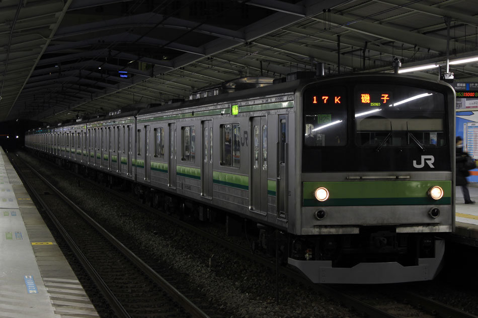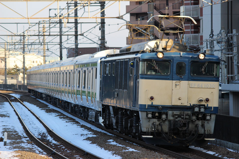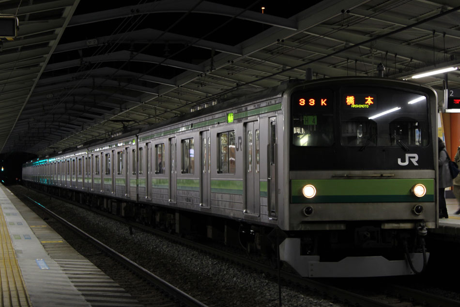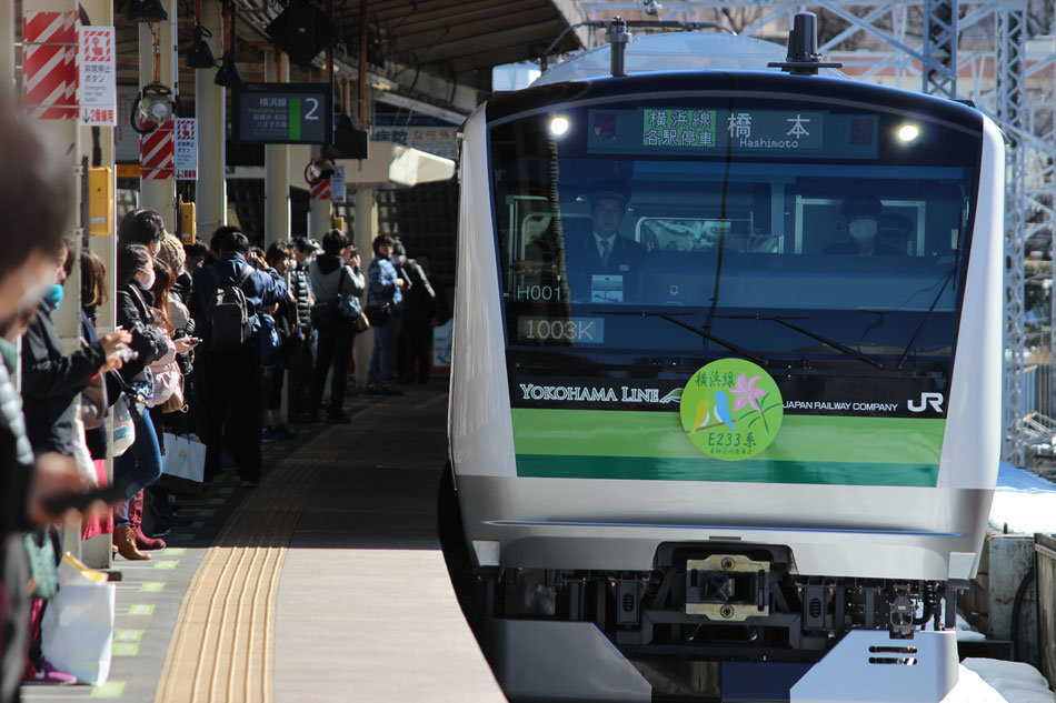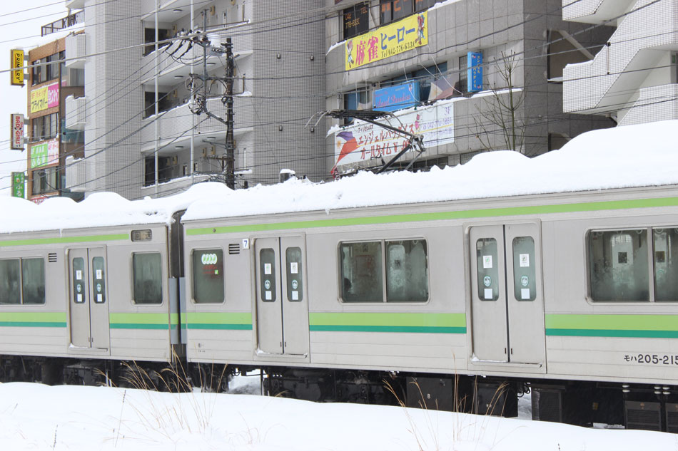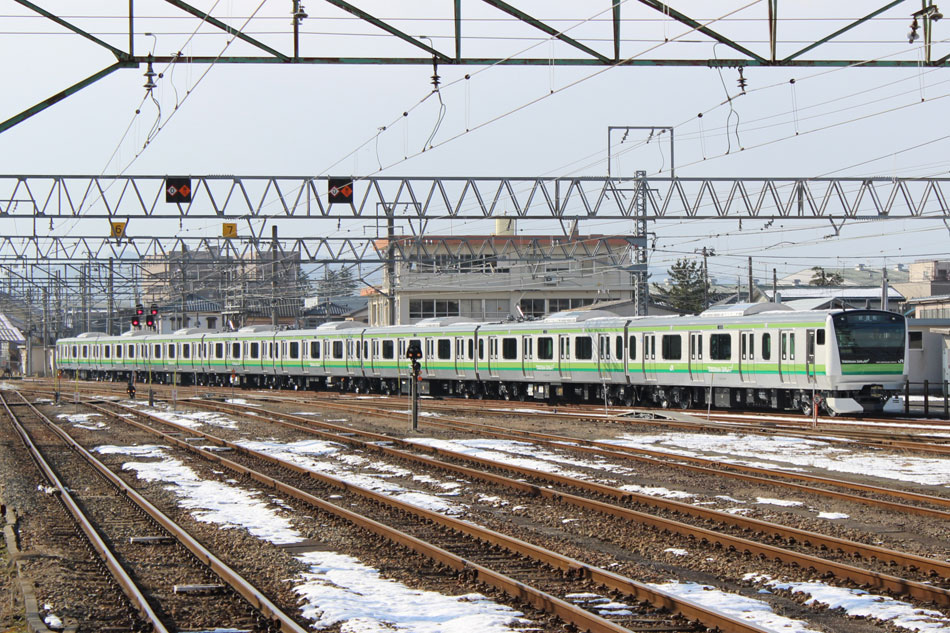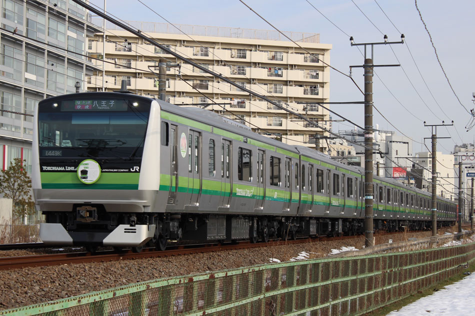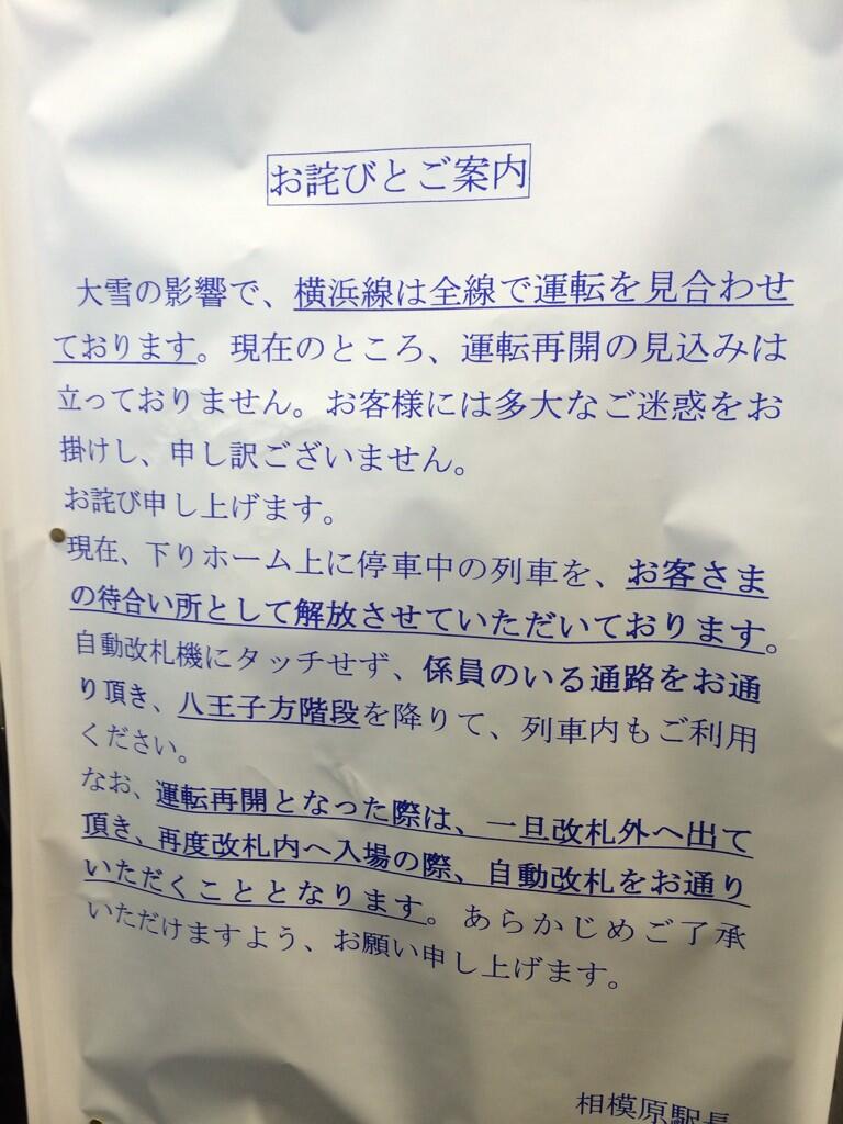 2月中旬の横浜線撮影分です。 ・11日 町田以北では8日に降った雪が融けずに残っていました。836KはH12編成が充当。 ↑836K 205系H12編成8B 快速"大船行"@相模原 橋本に移動、相原まで積雪状況を確認しつつ徒歩で雪×横浜線を何枚か。撮影中には雪がちらつく場面も。 ↑931K 205系H15編成8B 各停"八王子行"@橋本〜相原間 ↑951K 205系H14編成 各停"八王子行"@同上 ↑1050K 205系H14編成8B 快速"桜木町行"@相原〜橋本間 午後は川越車両センターに疎開したH002編成を見に行ったところ、数時間前に東大宮に移動したとのことで、東大宮で185系に囲まれるH002編成を撮影。翌日の高崎疎開を控えたハエ22編成に場所を開ける目的だったようで、翌12日にハエ22編成の高崎疎開後、東大宮から川越に戻っています。東大宮疎開はこの時だけ見られたシーン。 ・12日 H003編成の配給が新津〜大船間(武蔵野線経由)で運転されました。 ↑配9774レ EF64 1030[長岡]+E233系H003編成8B 配給@新座 ↑同上(後追い) ・13日 この日もH017編成の回送が運転されました。 ↑回9554K E233系H017編成8B 回送@相模原 ・14日 朝から雪が降っていましたが、まずは11日に見られなかったH002編成川越疎開。輸送障害による運用変更によりりんかい線70-000系が入庫しており、イレギュラーな並びが実現。 埼京線に入ってヘッドマーク付きのハエ28編成を撮影した後、帰りがけに淵野辺に寄り道。 ↑1644K 205系H20編成8B 各停"東神奈川行"@淵野辺 ↑1650K 205系H15編成8B 各停"東神奈川行"@同上 ↑1624K 205系H8編成8B 各停"桜木町行"@同上 ↑1640K 205系H21編成8B 各停"東神奈川行"@同上 この後雪が激しくなり、各所で倒竹や車両故障が発生、最終的に架線が切れて横浜線は終日運転見合わせ。暖房が効かない車内で一夜を過ごした人もいたようです。この日運転されていたH017編成の乗務員訓練に伴う回送列車は、橋本を出庫出来ずそのまま留置された模様。 ・15日 前日からの大雪により、始発から横浜線は再開見込みが立たず。 淵野辺駅では下り列車として発車直後のH18編成が立ち往生。 ↑22**K 205系H18編成8B@淵野辺付近 車内に乗客がいたのでどうしたんだろうと駅に向かうとこの掲示。 改札は自由入場だったのでホームへ。この時点では"43K 回送"表示で停車中、ドアは階段至近の1箇所のみドアコック扱いで開かれていました。車内の様子も見てみましたが、災害用毛布等が配布されたようで、この車内で一晩過ごしたと思われる人も多く見受けられました。 ↑205系H18編成8B@淵野辺 接近が点いていたので古淵方を見るとこちらにも立ち往生した列車。というわけで改札を抜けて現場へ、2235Kとして八王子へ向かっていたと思われるH7編成でした。こちらは車内に乗客はおらず乗務員のみ。 ↑205系H7編成8B@古淵〜淵野辺間 道路上の雪は除雪されておらず、ここまで来るのも大変だったのでこれ以上は進まず一度帰宅。9:40頃から東神奈川〜小机間で折り返し運転を開始するも小机〜八王子間はまだ見込みが立たず、12:30頃約13時間ぶりに全線での運転再開となりました。 淵野辺で抑止されていたH18編成の運転再開を確認し(後退せずに発車)、再出撃。まずはH7編成が通過。 ↑2235K(+820min) 205系H7編成8B 各停"八王子行" 町田まで下り線の除雪をしてきたらしいH21編成は回送で通過。 ↑回9*21K 205系H21編成8B 臨時回送 ↑**11K 205系H8編成8B 各停"八王子行" しばらく下り列車の間隔が開くという放送を聞いて少し移動。今度は上り線の除雪臨時回送、H24編成が通過。雪の塊を無理に除雪したためか前面排障器が折れ曲がっています。 ↑回9*40K? 205系H24編成8B 臨時回送 八王子からの上り線はH24編成しか在線が無かったようで、下り線の運転再開第一便だったH18編成が八王子から折り返して上り再開第一便となりました。 ↑1222K(+68min) 205系H18編成8B 各停"東神奈川行" 橋本派出の除雪が完了するまで横浜線は少ない本数で運行されていましたが、除雪完了後順次橋本から出庫し、夜までには平常運転に。しかし21:30頃八王子みなみ野〜片倉間で倒木が発生したため、再び運転見合わせ・遅れが生じました。 なお、H017編成は21時過ぎに橋本を出庫し大船に回送されました。翌日の運用開始に備え、2日にH002編成が付けていたヘッドマークを掲出したH001編成が大船〜東神奈川間で回送、こちらもヘッドマークを掲出したH016編成が大船〜橋本間で回送されています。 ・16日 横浜線E233系がいよいよデビュー。東神奈川駅で予定されていた出発式は、前日までの大雪の影響で中止されましたが、沿線には今まで見たことがない程たくさんのファンが詰めかけていました。 新型車両運用開始日にもかかわらず、横浜線は朝の橋本駅ポイント不転換の影響で遅延が発生。836KはH9編成が充当。 ↑836K 205系H9編成8B 快速"大船行"@淵野辺 遅延の影響も心配されたものの、H001編成は東神奈川〜小机間で臨時回送後、H13編成から運用変更し予定通り1003Kで無事に運用開始! ↑1003K E233系H001編成8B(HM掲出) 各停"橋本行"@菊名 こちらのH001編成に初乗車、前日に橋本まで回送されていたH016