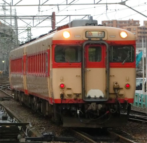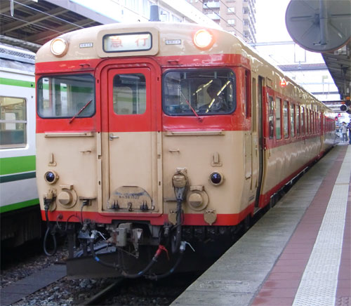 10月に行った新潟県。この時は「にいつ鉄道まつり」と「中央線120ゴロンと号」を中心に旅行しました。そして、再び新潟へ行く事になりました。今回から新潟鉄道旅行の旅行記をUPしていきます。 始発列車で自宅を出発し、東京駅6:08「とき301号」で新潟へ。 新潟に到着し、まずは「いなほ」を撮影。 続いて、急行きたぐに。583系唯一の定期列車が夜行急行というのが天の巡り合わせではないか、と思ってしまいます。 と、ここで問題が・・・。 7:04に新潟に到着しているはずのキハ58・28が居ません・・・。と思ったら、発車5分前に入線してきました。さすがに2時間も停めておけるほどホーム数は多くありません。 おもいでの急行ひめかわ号となったキハ58・28。停車中に撮影しました。 急行ひめかわ号は間もなく発車いたします。続く。 PR コメントを投稿する