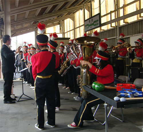 団体臨時列車「おもいでの急行ひめかわ号」は9:00に新潟を発車しますが、8:54頃に入線してきました。新潟駅で撮影したものは前回記事でご紹介したので省略します。 新潟を定時発車・・・ではなく、強風のため2分延発。日本海側のこの日の天気は曇り雨強風。先が思いやられます・・・。 新潟発車後、車内放送がかかりました。「本日は団体臨時列車おもいでの急行ひめかわ号にご乗車いただきまして誠にありがとうございます。この列車は糸魚川行きです。次は白山、白山です。白山の次は内野・巻・吉田・出雲崎・柏崎の順に停車してまいります。」最近の団臨によくある「停まるけど運転停車だからドアは開かない」というものでは無いようで一安心です。 ゆっくり席に座る間もなく、白山に到着しました。1〜2分停車の予定でしたが、交換列車の遅延のため停車時間が長くなるということでドアを開けてくれました。 結局、6分延発。遅れが徐々に拡大していってます。 列車は、まだまだ住宅街が立ち並ぶ越後線を快走していきます。前を走る列車の遅延のため、内野駅で3分停車しました。ここでも撮影できました。 内野を発車したあと、電車並みにスピードを出しました。その後、列車の交換と時間調整のため停止信号が続きましたが、その分巻での停車が無くなりましたので吉田には7分延着でした。吉田では、ブラスバンドの演奏と1日駅長の出発合図のイベントがありました。初めて歓迎された気がします。 ブラスバンド。 ここでも、しっかりと撮影。始発列車の115系と並びました。 垂れ幕も登場しました。遅れていたため、1日駅長の方はしどろもどろしていました。一般募集の方らしいので仕方ないですが、周辺にいる駅員さんも連絡業務が大変なため手が回っていない感じでした。発車が近づくとバンドは「銀河鉄道999(オープニングの方」を演奏し始めました。 曲が終わって、発車! のはずが、進行信号にかわらず、3分遅れるとのこと・・・。バンドは再び「銀河鉄道999(オープニング)」を演奏し、汽笛一声発車。でも何か締まりがないというか・・・。 吉田を遅れて発車した列車は、軽快に進みます。吉田以降は列車本数が激減するため、交換もなくスピードが出ます。この分なら次の停車駅である出雲崎での26分停車を削れば定刻になります。車内アナウンスで「まもなく出雲崎です。出雲崎では停車時間を短縮し正常な運転時刻に戻します。」と流れました。出雲崎には15分遅れで到着しました。 出雲崎駅では、サボや車番を中心に撮影しました。 編成写真も撮れました。停車時間がある程度長いのは撮影に集中できるのですごい良いです。 発車時刻が近づいたので、面撮りに変更。 定刻に戻った急行ひめかわ号は、林の中を突き進みます。越後線は信越本線と違って海の近くを走る事はほとんどなく、車内から見えるのは畑と林ぐらいです。 列車は、東柏崎を通過・・・せず、停車。ここにきて運転停車です。10分ほど停車して、発車しました。東柏崎を発車すると、すぐに柏崎に着きます。 柏崎では、中線に115系が停車していたため、編成をおさめることはできませんでした。 越後線を走破したおもいでの急行ひめかわ号は、いよいよ信越本線〜北陸本線に入っていきます。続く。 PR コメントを投稿する