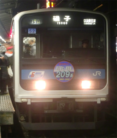 引退ヘッドマークを掲出した209系ウラ52編成を撮影
