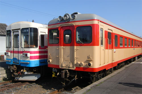 偕楽園で梅を観た後は、常磐線に乗って勝田へ。 勝田ではE653系青編成が留置されていました。 常磐線からひたちなか海浜鉄道に乗り換え。まずは地元の高校生がデザインしたという駅名標を撮影。 新色となったキハ3700形の2連で運転されていました。 那珂湊で降りると、反対側にこの日の目的である「メイドトレイン」編成が停車中でした。ちょうど踏切があいたので、撮影。真っ正面からの構図もなかなかいいものです。 勝田方先頭のキハ2005。1月1日からこのカラーで運転されています。 出発時、構内に留置されていたミキ300−103と並びで撮影。 メイドトレインが出発したので、ミキ300−103を撮影。三木鉄道当時のカラーで運行されています。 キハ2004が工場に入っていました。どうやらこの時は不具合があったようですが、現在では運用復帰しています。 廃車体となっているキハ202。ひどい錆・・・。 キハ202の裏にちらっと写ってましたが、キハ203は再塗装されて首都圏色に塗り替えられました。角形ライトが無ければ最高なんですが・・・。 先ほど錆び付いていたキハ202の後ろに留置されているキハ204と一緒に。キハ204はキハ202と比べるとまだ大丈夫そうです。 こうして見るとまだまだ走れそうな気がしますが・・・。 車体だけ保存されギャラリーになっているケハ601。生き残っている貴重な湘南顔です。ステンレスというのが凄いですね。 ②に続きます。 PR コメントを投稿する