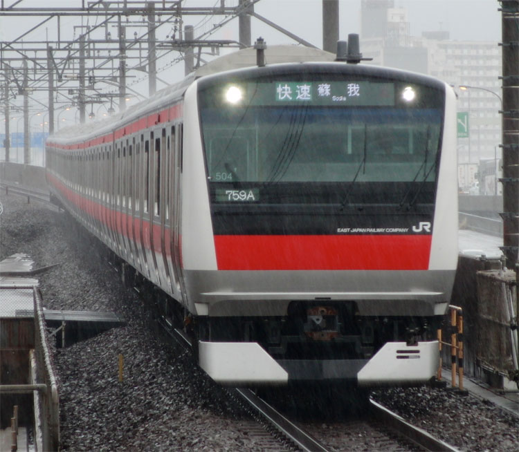 この日は、最後の活躍を続ける489系がTDL臨として上京してきたので、撮影してきました。 まずは新木場にて。早朝、雨ということで酷い写真に・・・。 続いて、舞浜にて。待機中にやってきた定期列車も・・・。 83運用:ケヨK3+ケヨ53、各停蘇我行き。 メルヘン顔と標準顔の並び。近いうちに見れなくなる・・・かも。 デビュー後、初撮影となったE233系。759A:ケヨ504、快速蘇我行き。 そして本番。 武蔵野線で追っかけますが、次の列車は京葉線だったので居残り・・・。721Y:ケヨ502、各停蘇我行き。 追っかけて、吉川にて。 なかなか上京してこなくなった489系、来年の夏まで残るのか?注目ですね。 PR コメントを投稿する