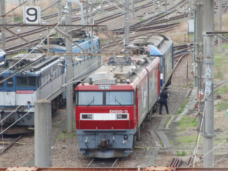 この日は、新鶴見機関区を観察してきました。2/5以来の訪問です。 鹿島田跨線橋を駅から見て左側、横浜羽沢側にはEF65−1070。 休車倉にはEF65−1048。長らく静岡貨物で訓練用に使われていたカマ。今後どう動くのでしょう。 だんだんと塗装が薄くなってきたEF65−1064。動き無し。 反対側に渡りまして・・・EF65−1083。 やっと撮れました。EF65−1122。今度は貨物を牽引中の姿も撮りたいですね。 EF510−515。 EF64−1036が帰区。 EF64−1045。 「がんばろう東北」ステッカーが架線柱に被っちゃってますが・・・EH500−38。 最後は橋の上からEH500−11。 この日はこれまでで帰宅しました。 PR コメントを投稿する