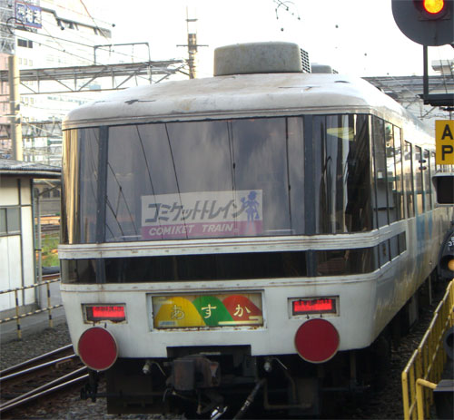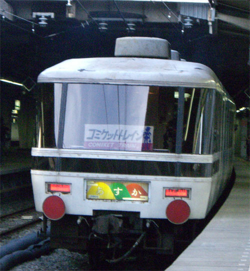 今日は、早朝から撮影に行ってきました。まずは「あすか」の話題から。 JR西日本のジョイフルトレイン「あすか」が、本日から開催されるコミックマーケット参加者向けの団臨「コミケットトレイン」として上京してきました。 EF66 49が牽引。品川に入線。 臨時8番線ホームに入りました。 停車中。田町車セへの引き上げまでしばらく時間があるので、各部を撮影していきましょう。 あすかロゴ1。 下からの角度で。 横から。 車内。こちらは先頭の展望席。 車内。 あすかロゴ2。 あすかロゴ3。 手作り方向幕が掲出されていました。結構凝ってますね。 EF66とあすかの連結部分。 前から。 田町車両センターに引き上げます。後追い。 和風客車「あすか」、ジョイフルトレインの廃車によって活動が多くなってきていますが、同時に老朽化が目立ってきています。 また、コミケットトレインは今年の運転が最後だったようです。関西方面からのコミケ利用客向け団臨として1986年から運転を開始し、22年目の運転を最後に静かに幕を閉じたコミケットトレイン。お疲れさまでした。 PR コメントを投稿する