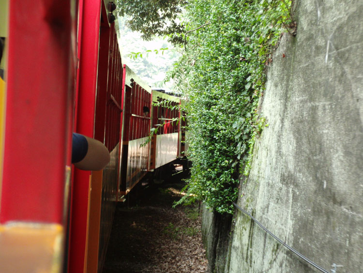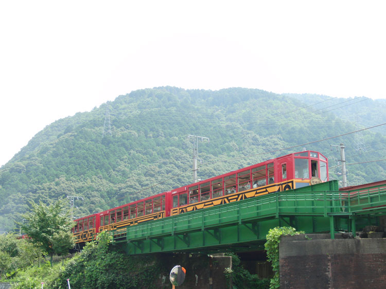 19世紀ホール〜ジオラマ京都JAPANの保存車を見た後は、嵯峨野観光鉄道のトロッコ列車に乗車です。 トロッコ嵯峨駅では混雑のため撮影できず、着席。今回は、「ザ・リッチ号」と呼ばれる5号車、窓が一切取り払われた、当日券限定の車両。ただ非冷房、京都の酷暑の中では辛かった・・・。 さて、この嵯峨野観光鉄道が走行しているのは、山陰本線の旧線。山陰本線の電化&複線化の際に、大きく蛇行して走る旧線では用地などの問題があるということで、嵯峨嵐山駅〜馬堀駅間は線路を移転し、旧線は廃線となりました。しかし、保津川に沿って走る旧線は美しい景色を堪能できる素晴らしい区間。ということで、平成3年から観光用路線として運転されるようになりました。 貨車からの改造車なのでとにかく揺れます・・・。大きなカーブを走行中に1枚。 しばらくすると、進行方向右側、自分が座っている方にも保津川が。 トロッコ保津峡駅に到着。たぬき。 山陰本線(新線)と交差。 開けてきまして、まもなく終点のトロッコ亀岡駅に到着です。 駅の外に出て、少ない折り返し時間の中で撮影。トロッコ車両に合わせた塗装となっている、DE10−1104が牽引しています。 乗客の乗降を終えると、すぐに発車していきました。 ・・・夏の利用はあまりおすすめしません(笑)とにかく、暑かったです。また、ザ・リッチ号には乗らないべきかと思います・・・カーブの際のレールが軋む音がとても気になりましたので。 もう少し列車自体の撮影時間も設けてくれると良いのですが・・・。 この後は、並河駅の小さな鉄道歴史公園に向かいます。続く。 PR コメントを投稿する