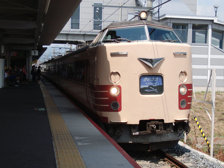 嵯峨野観光鉄道に乗車した後は、並河駅の鉄道歴史公園に向かいます。 トロッコ亀岡駅から歩いて、馬堀駅から山陰本線に乗車。 といっても隣の亀岡駅止まりだったので、後続の園部行きを待っていると・・・183系特急「きのさき」が入線してきたので撮影。485系からの改造車ということで、おでこライトはそのまま、床下機器が撤去されているだけ。ただ、側面に帯が追加されています。 後追いは、どう見ても485系な顔。でも183系。 そんな183系「特急きのさき号」ですが、置き換えの波が迫っています。今年の3月12日から営業運転を開始した287系、今後全ての「きのさき」が287系に統一される予定です。嵯峨嵐山駅に向けて京都から山陰本線に乗車する前に撮影した「きのさき1号」。 さて、後続の園部行きが来ましたので乗車、今度こそ並河駅に向かいます。続く。 PR コメントを投稿する