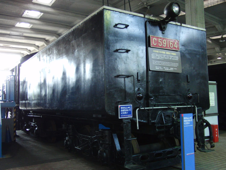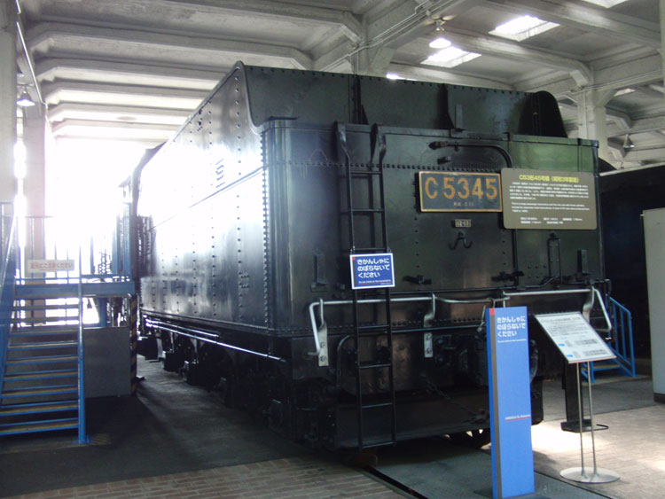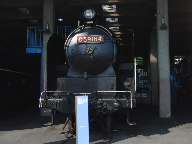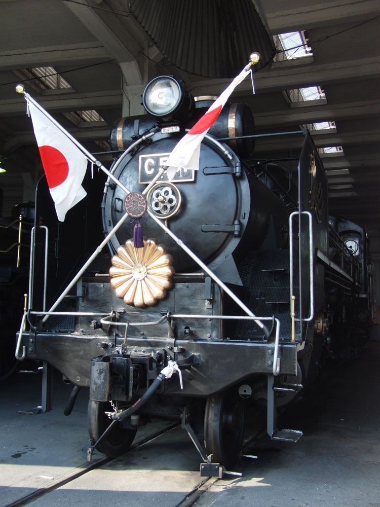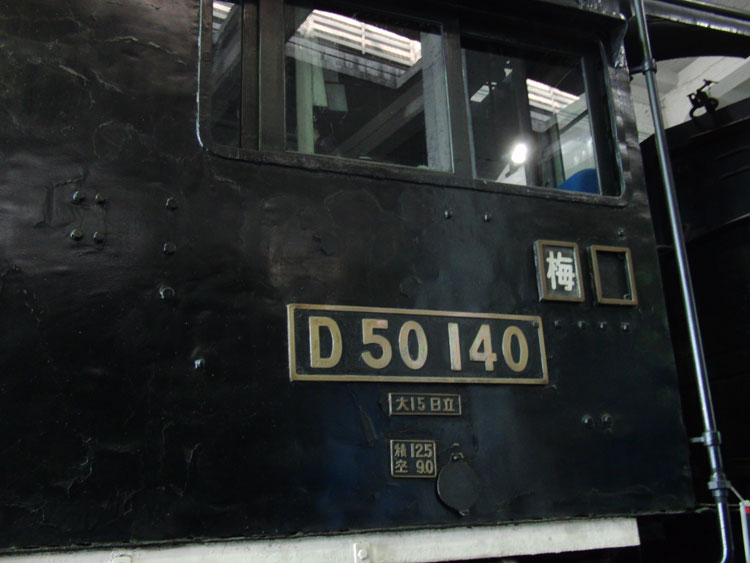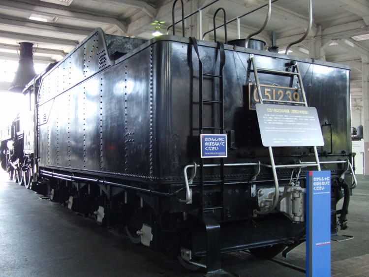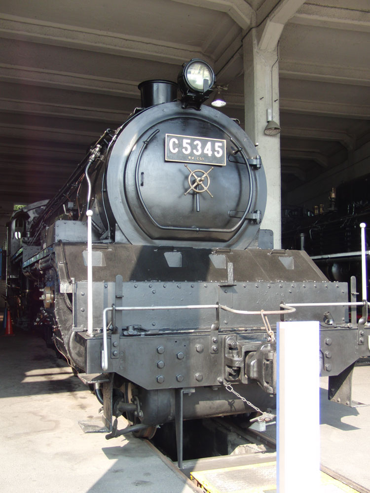 ・車歴 製造年月日 1935年3月29日 製造所 川崎車輌 1935年4月21日 小樽築港機関区 1947年9月9日 旭川機関区 1958年9月22日 室蘭機関区 1968年9月21日 旭川機関区 1970年5月14日 苗穂工場にて全検を受ける 1971年11月16日 梅小路機関区 〜動態保存〜 1979年3月28日 梅小路機関区にて廃車 案内板はなし。 刻印。他にC57 140・C57 55の刻印も確認しました。 プレート回り。 炭水車側からも。 続いて、C53 45号機。 ・車歴 製造年月日 1928年11月2日 製造所 汽車製造 192*年 梅小路機関区 1938年 姫路機関区 1943年 宮原機関区 1950年6月29日 梅小路機関区にて廃車 〜国鉄吹田教習所にて保存〜 1961年9月21日 公式試運転を鷹取〜吹田間で実施 〜交通科学博物館にて保存〜 19**年 梅小路蒸気機関車館に移設、保存 1928年(昭和3)から1930年(昭和5)にかけて97両が製造された、国産で唯一の3シリンダーを持つ大型の旅客用機関車です。当機は、東海道・山陽本線の特急から普通列車まで幅広く活躍していました。しかし、構造が複雑で保守が困難なため、C59形と入れ替わり引退となりました。その後、1961年(昭和36)に復元、交通科学博物館に展示されていましたが、当館の開館時に移されました。 (案内板より) 側面。ちなみに、プレートが交通科学博物館・共栄興業さんにも保存されているのを確認しました。 ぜひとも動態復元を期待したいカマですね。 続いて、C59 164号機。 ・車歴 製造年月日 1946年8月10日 製造所 日立製作所笠戸工場 1946年8月16日 梅小路機関区 1950年8月11日 糸崎機関区 1972年10月2日 梅小路機関区 1979年3月28日 梅小路機関区にて廃車 1941年(昭和15)から1947年(昭和22)にかけて173両が製造された大型の旅客用機関車です。東海道本線の電化まで「つばめ」・「かもめ」・「富士」・「さくら」などの特急列車をけん引し、東海道・山陽本線などで活躍しました。当機は、梅小路と糸崎に所属し、移動履歴の少ない機関車でありました。 (案内版より) C59 175の刻印の上から押された、164号機の刻印。 キャブ内の状態は良し。 後ろから。 続いて、D52 468号機。 ・車歴 製造年月日 1946年2月19日 製造所 三菱重工三原工場 1949年3月1日 沼津機関区 1956年 姫路第一機関区 1960年10月1日 五稜郭機関区 1967年3月4日 函館本線野田生~落部間にて土砂崩れ 脱線転覆 その後復活 1972年10月1日 梅小路機関区 1979年3月28日 梅小路機関区にて廃車 1943年(昭和18)から1946年(昭和21)にかけて285両が製造された日本最大で最強の貨物用機関車です。戦時中の石炭輸送などを目的にD51形の1000tのけん引を上回る1200tのけん引力を目標に設計されました。 当機は、姫路や北海道の五稜郭などに所属し、貨物専用機として設計どおりの性能を発揮、マンモス機関車の名に恥じない活躍をしました。 (案内版より) このカマは、D52のラストナンバー(最終製造機ではありません)。貨物列車の牽引で活躍した機関車。 キャブ内の状態も良好です。 後ろからも。反射板が付けられています。 続いて、D50 150号機。 ・車歴 製造年月日 1926年3月20日 製造所 日立製作所笠戸工場 1926年3月28日 梅小路機関区 1927年12月11日 糸崎機関区 1928年3月12日 岡山機関区 1928年11月25日 姫路機関区 1930年10月1日 梅小路機関区 1931年12月21日 吹田機関区 1941年4月12日 大里機関区 1942年10月31日 直方機関区 1968年10月6日 若松機関区 1971年4月30日 筑豊本線にてさよなら運転 1979年3月28日 梅小路機関区にて廃車 1923年(大正12)から1931年(昭和6)にかけて380両が製造された大正期を代表する大型の貨物用機関車です。当機は、貨物輸送量の増加に伴い、9600形を上回る性能を求められて誕生しました。『デゴマル』の愛称で親しまれ、長く東海道・山陽本線で活躍しました。また、晩年は九州において普通列車、運炭列車としてD50形の中でも一番最後まで活躍した機関車です。 (案内版より) 新製直後は関西地区で細かな転属を繰り返したカマ。案内板には「東海道・山陽本線で長く活躍〜」とありますが、実際には九州で活躍していた年数の方が長いですね。 刻印は、D60 32だったり19939だったり・・・ やたらすっきりしているプレート回り。 炭水車側から。謎の階段が設置されています。 続いて、C58 1号機。 ・車歴 製造年月日 1938年8月4日 製造所 汽車製造 1938年8月4日 新鶴見機関区 1949年4月1日 千葉機関区 1950年5月30日 北見機関区 1972年9月16日 梅小路機関区 〜SLやまぐち号を牽引〜 1986年5月30日 梅小路機関区にて廃車 1938年(昭和13)から1947年(昭和22)にかけて427両が製造された中型の客貨両用の機関車です。C57形に近いスピードとD51形に近いけん引力を兼ね備えていました。当機は、大宮や北見に所属し、全国各地のローカル線で活躍しました。 (案内板より) 一時期はC57 1号機とともにSLやまぐち号を牽いたカマですが、ボイラーの不調により静態保存機となりました。お召し仕様で保存されていますが、実際にこのカマがお召し列車を牽引したことはありません。 デフには金の鳳凰。 今にも走り出しそうな雰囲気。 後ろから。 続いて、C51 239号機。 ・車歴 製造年月 1927