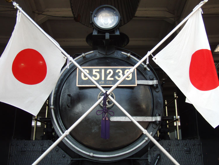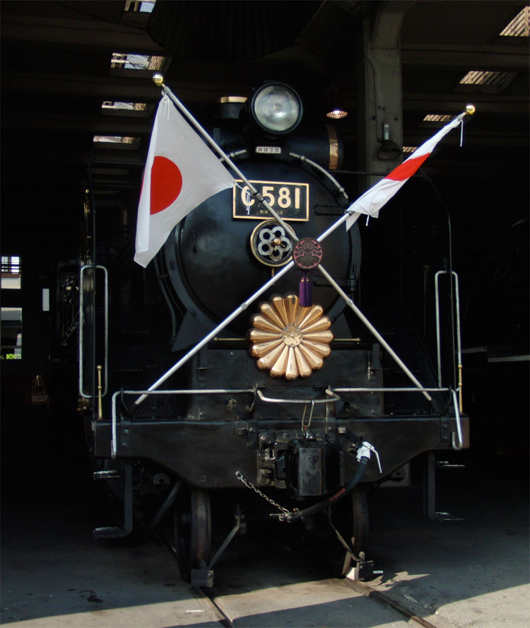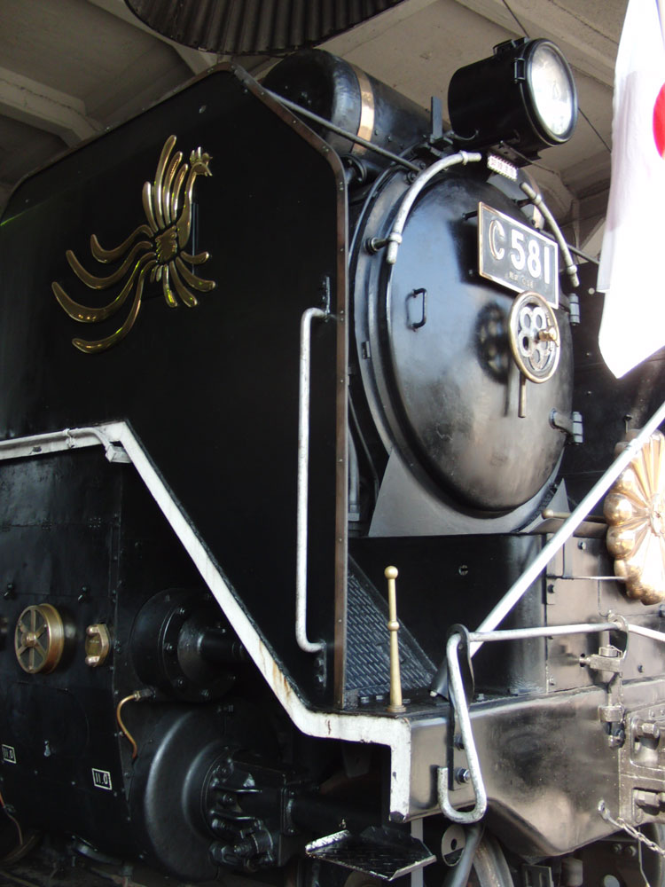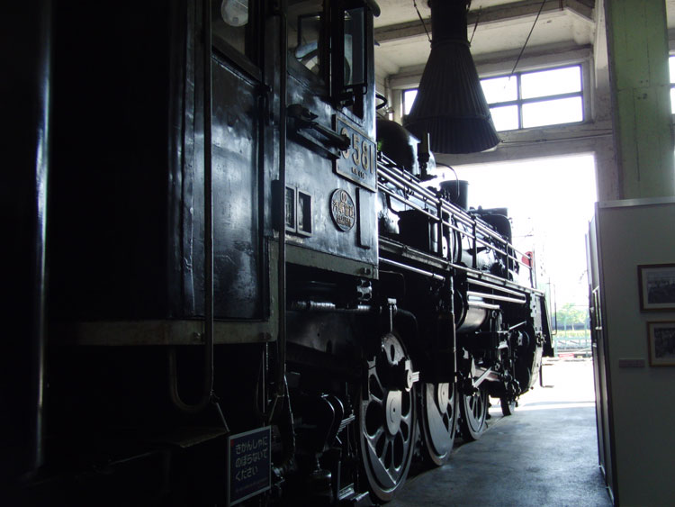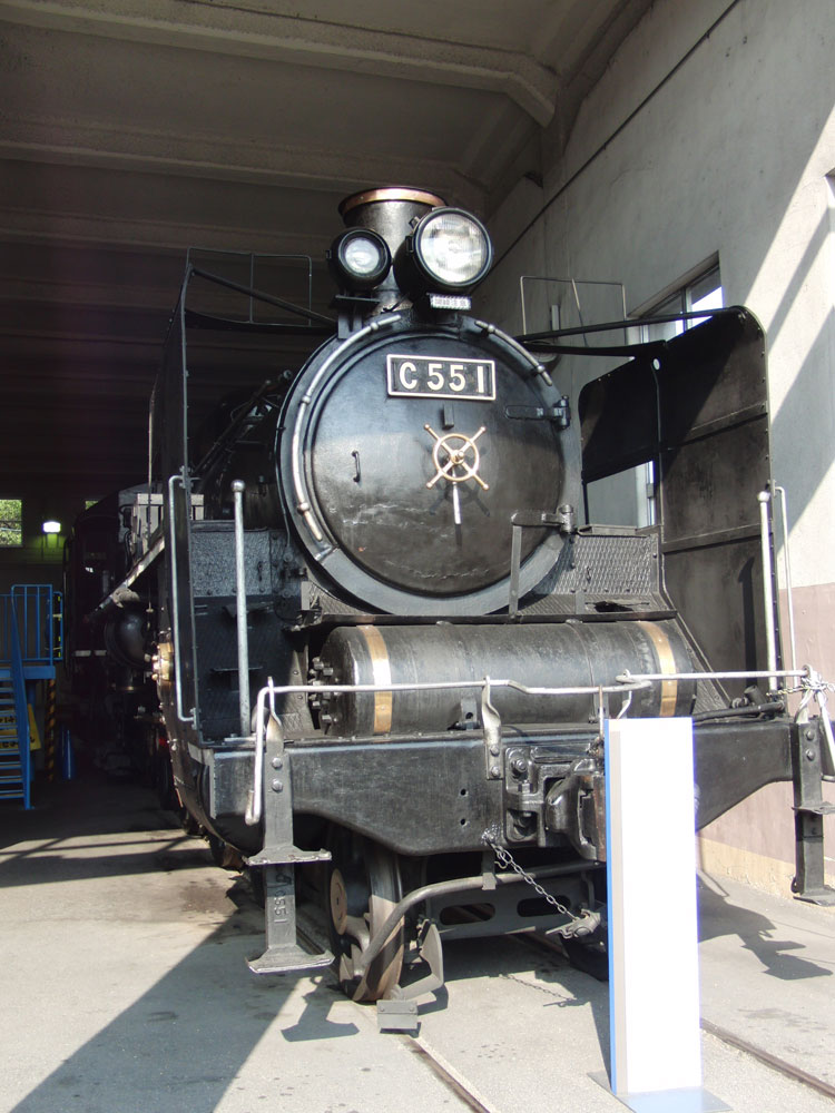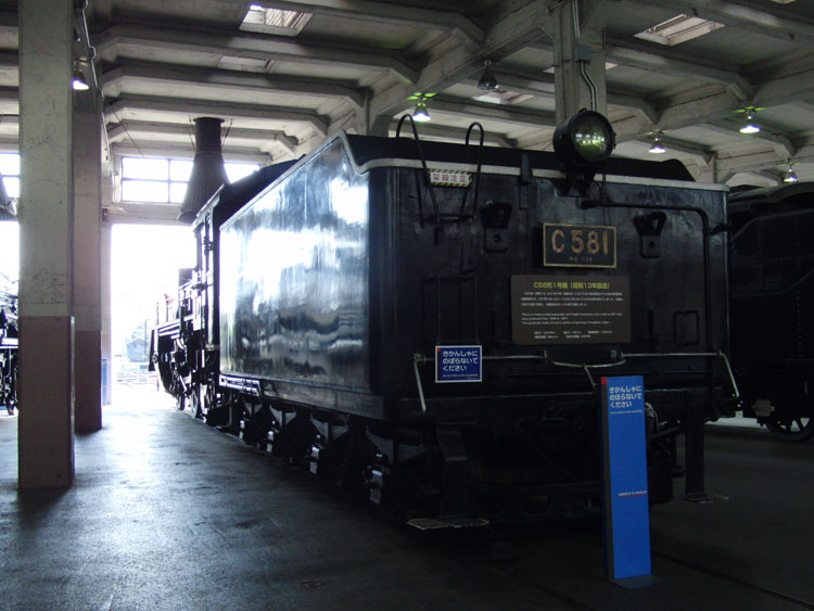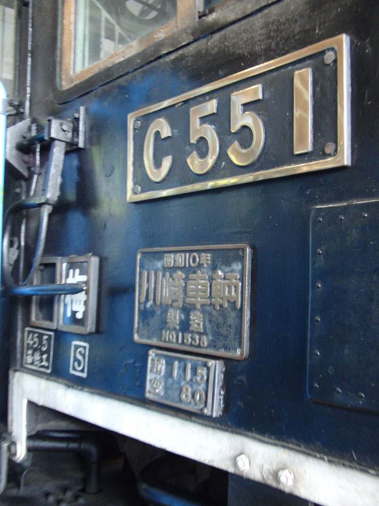 ・車歴 製造年月日 1935年3月29日 製造所 川崎車輌 1935年4月21日 小樽築港機関区 1947年9月9日 旭川機関区 1958年9月22日 室蘭機関区 1968年9月21日 旭川機関区 1970年5月14日 苗穂工場にて全検を受ける 1971年11月16日 梅小路機関区 〜動態保存〜 1979年3月28日 梅小路機関区にて廃車 案内板はなし。 刻印。他にC57 140・C57 55の刻印も確認しました。 プレート回り。 炭水車側からも。 続いて、C53 45号機。 ・車歴 製造年月日 1928年11月2日 製造所 汽車製造 192*年 梅小路機関区 1938年 姫路機関区 1943年 宮原機関区 1950年6月29日 梅小路機関区にて廃車 〜国鉄吹田教習所にて保存〜 1961年9月21日 公式試運転を鷹取〜吹田間で実施 〜交通科学博物館にて保存〜 19**年 梅小路蒸気機関車館に移設、保存 1928年(昭和3)から1930年(昭和5)にかけて97両が製造された、国産で唯一の3シリンダーを持つ大型の旅客用機関車です。当機は、東海道・山陽本線の特急から普通列車まで幅広く活躍していました。しかし、構造が複雑で保守が困難なため、C59形と入れ替わり引退となりました。その後、1961年(昭和36)に復元、交通科学博物館に展示されていましたが、当館の開館時に移されました。 (案内板より) 側面。ちなみに、プレートが交通科学博物館・共栄興業さんにも保存されているのを確認しました。 ぜひとも動態復元を期待したいカマですね。 続いて、C59 164号機。 ・車歴 製造年月日 1946年8月10日 製造所 日立製作所笠戸工場 1946年8月16日 梅小路機関区 1950年8月11日 糸崎機関区 1972年10月2日 梅小路機関区 1979年3月28日 梅小路機関区にて廃車 1941年(昭和15)から1947年(昭和22)にかけて173両が製造された大型の旅客用機関車です。東海道本線の電化まで「つばめ」・「かもめ」・「富士」・「さくら」などの特急列車をけん引し、東海道・山陽本線などで活躍しました。当機は、梅小路と糸崎に所属し、移動履歴の少ない機関車でありました。 (案内版より) C59 175の刻印の上から押された、164号機の刻印。 キャブ内の状態は良し。 後ろから。 続いて、D52 468号機。 ・車歴 製造年月日 1946年2月19日 製造所 三菱重工三原工場 1949年3月1日 沼津機関区 1956年 姫路第一機関区 1960年10月1日 五稜郭機関区 1967年3月4日 函館本線野田生~落部間にて土砂崩れ 脱線転覆 その後復活 1972年10月1日 梅小路機関区 1979年3月28日 梅小路機関区にて廃車 1943年(昭和18)から1946年(昭和21)にかけて285両が製造された日本最大で最強の貨物用機関車です。戦時中の石炭輸送などを目的にD51形の1000tのけん引を上回る1200tのけん引力を目標に設計されました。 当機は、姫路や北海道の五稜郭などに所属し、貨物専用機として設計どおりの性能を発揮、マンモス機関車の名に恥じない活躍をしました。 (案内版より) このカマは、D52のラストナンバー(最終製造機ではありません)。貨物列車の牽引で活躍した機関車。 キャブ内の状態も良好です。 後ろからも。反射板が付けられています。 続いて、D50 150号機。 ・車歴 製造年月日 1926年3月20日 製造所 日立製作所笠戸工場 1926年3月28日 梅小路機関区 1927年12月11日 糸崎機関区 1928年3月12日 岡山機関区 1928年11月25日 姫路機関区 1930年10月1日 梅小路機関区 1931年12月21日 吹田機関区 1941年4月12日 大里機関区 1942年10月31日 直方機関区 1968年10月6日 若松機関区 1971年4月30日 筑豊本線にてさよなら運転 1979年3月28日 梅小路機関区にて廃車 1923年(大正12)から1931年(昭和6)にかけて380両が製造された大正期を代表する大型の貨物用機関車です。当機は、貨物輸送量の増加に伴い、9600形を上回る性能を求められて誕生しました。『デゴマル』の愛称で親しまれ、長く東海道・山陽本線で活躍しました。また、晩年は九州において普通列車、運炭列車としてD50形の中でも一番最後まで活躍した機関車です。 (案内版より) 新製直後は関西地区で細かな転属を繰り返したカマ。案内板には「東海道・山陽本線で長く活躍〜」とありますが、実際には九州で活躍していた年数の方が長いですね。 刻印は、D60 32だったり19939だったり・・・ やたらすっきりしているプレート回り。 炭水車側から。謎の階段が設置されています。 続いて、C58 1号機。 ・車歴 製造年月日 1938年8月4日 製造所 汽車製造 1938年8月4日 新鶴見機関区 1949年4月1日 千葉機関区 1950年5月30日 北見機関区 1972年9月16日 梅小路機関区 〜SLやまぐち号を牽引〜 1986年5月30日 梅小路機関区にて廃車 1938年(昭和13)から1947年(昭和22)にかけて427両が製造された中型の客貨両用の機関車です。C57形に近いスピードとD51形に近いけん引力を兼ね備えていました。当機は、大宮や北見に所属し、全国各地のローカル線で活躍しました。 (案内板より) 一時期はC57 1号機とともにSLやまぐち号を牽いたカマですが、ボイラーの不調により静態保存機となりました。お召し仕様で保存されていますが、実際にこのカマがお召し列車を牽引したことはありません。 デフには金の鳳凰。 今にも走り出しそうな雰囲気。 後ろから。 続いて、C51 239号機。 ・車歴 製造年月 1927