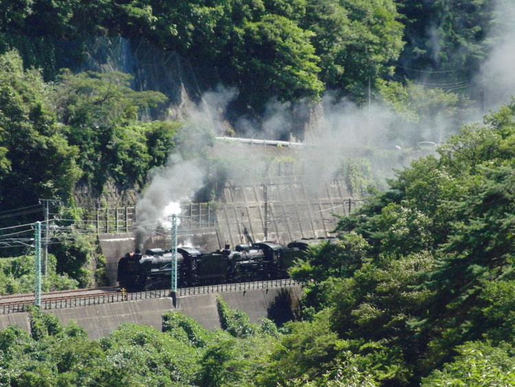 それでは、いよいよメインの上越線重連に入ります。この日の組み合わせは、D51 498+C58 363。 往路は、上牧〜水上間の諏訪橋大橋から撮影です。台風の影響で川の水が汚いので、川は入れない構図で待機。先行する普通列車は、ぐんまDCのHM・ラッピングの115系でした。 さてさて・・・本番が近づいてきました・・・いい煙! 近づく近づく・・・あれ?C58の煙が・・・。 ベスト位置に来たら、D51 498の煙も薄く。 ・・・と思ったら、手前に来たら再び煙を吐き出しました。 まあ、悪くはないでしょう。後ろの旧客も写しておきます。 ということで、往路は煙はイマイチでしたが、やっぱり重連の迫力は単機とは違うものがありますね。続いて、水上駅の転車台広場に向かいました。続く。 PR | カレンダー