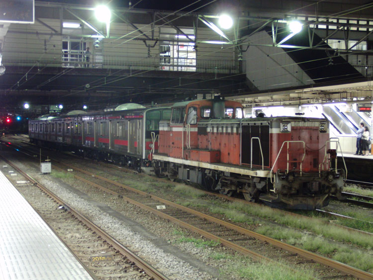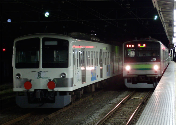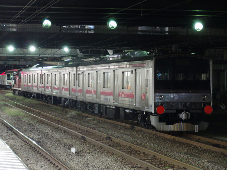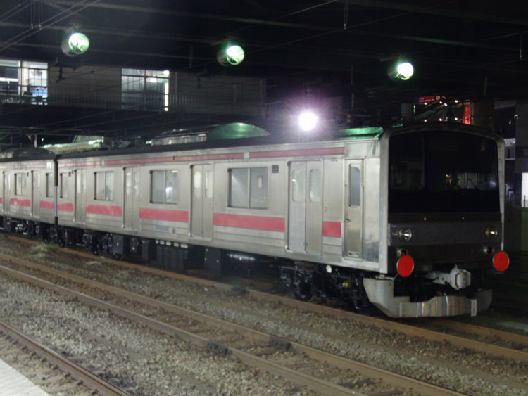 この日は元京葉線205系を改造した富士急6000系の甲種輸送があるということで、終電間際の八王子に行ってきました。 甲種の編成は下2番に留置中。東京方には、梶ヶ谷から大月構内にある非電化の富士急行連絡線入れ換え用としてDE10 1101を連結。 種車はケヨ22編成、1月に編成単位で長野総合車両センターに配給された後、改造が進められました。残りの改造は富士急の方で行われるようで、最小限の改造にとどめられています。こちらは元クハ204-11。京葉線当時の赤帯のまま、JRマークはテープで隠されています。各車両にはドアボタンが設置されていました。 元モハ204-33。優先席シールもそのままの状態。 元モハ205-33、先頭車化改造が行われ運転台が取り付けられました。運転台部分には帯がありませんね。 改造後の姿が楽しみです。まさか205系が富士急行に行くとは…。 横浜線ホームから。 EF64 1024が連結されている姿を撮りたかったのですが、横浜線の終電までに連結されなかったので残念ながら撤収。 −おまけ− この日は西武多摩川線新101系「夏」編成の入場もありました。 横浜線、上りの終電となる2438K町田行きと並び。 PR コメントを投稿する