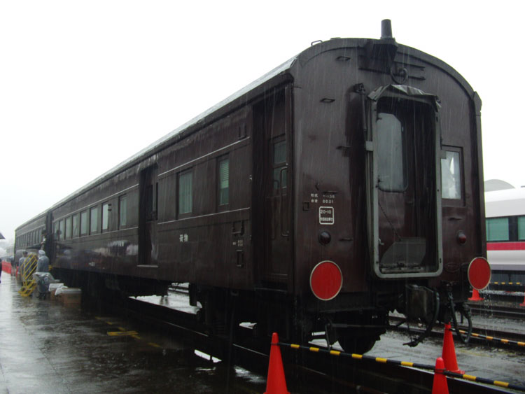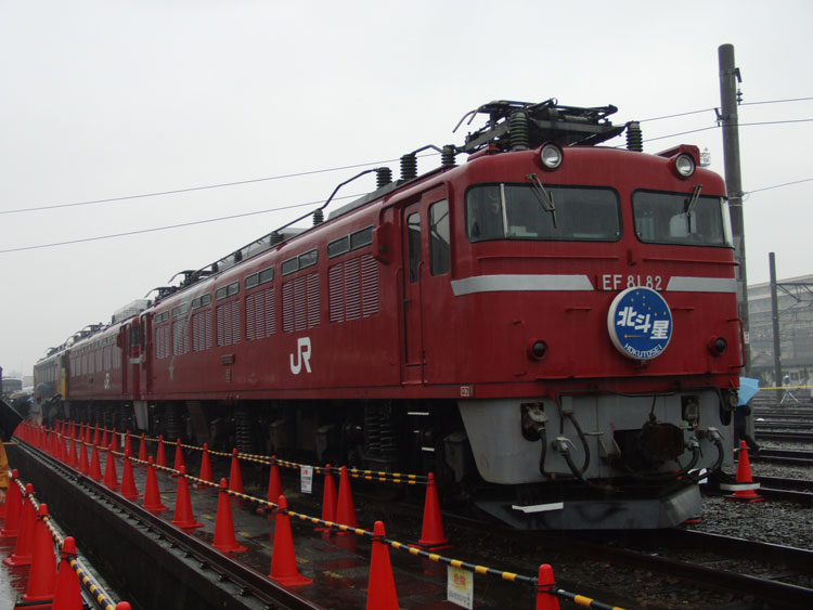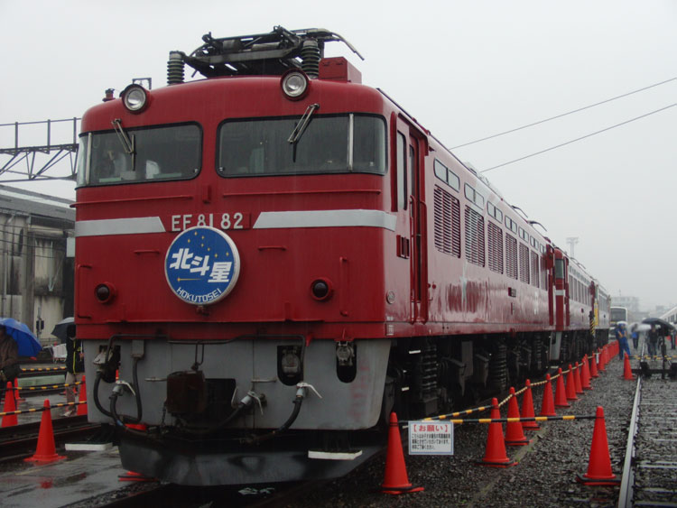 大宮でE6系を見た後は、宇都宮線の普通列車で尾久駅へ。今年も恒例の「ふれあい鉄道フェスティバル」が開催されたので、来場してきました。安全点検?で宇都宮線が遅れており、最終入場時刻に間に合わないのではないかとヒヤヒヤしましたが、入場締め切りを少しだけ延ばしてくれたのでギリギリ入場できました。 EF81の3重連。廃車待ちの車両です。手前はEF81−82。 「北斗星」HMを付けるのもこれで最後でしょうね・・・。 挟まれているのはEF81−85。 「貨物機」と呼ばれた、側面の流れ星が無いカマはこのカマが最後になってしまいました。 一番奥側の車両がEF81−92。カシガマで残っているのはこのカマだけ。 今年も、休憩用車両として旧型客車2両が用意されました。 2両じゃ裁けないとでも思ったのか、房総地区用209系C407編成も同じく休憩用として用意。 今回の目玉?常磐線新型特急E657系。車内には立ち入れませんでした。 デビューは来年春の予定ですが、2月に試乗会が行われます。 カシオペアの予備電源車、カニ27−1。最近はあまり使われませんね。 E655系「和」は今年も倉に入った状態で展示です。 長くなってしまったので(2)に続きます。 PR コメントを投稿する