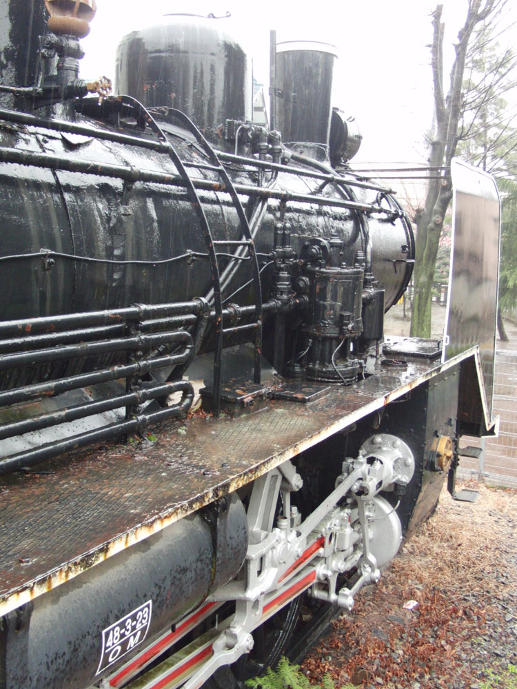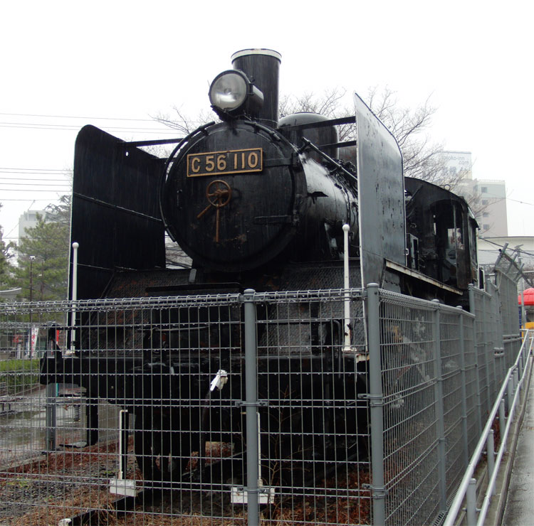 ららぽーと新三郷の夢空間2両の後は、草加駅近くの氷川中公園に保存されているC56 110号機を訪問。 ・車歴 製造年月日 1937年9月30日 製造所 三菱造船 1937年12月 木次機関区 1972年12月19日 浜田機関区にて廃車 C56形の蒸気機関車は、昭和10年2月その第1号機が誕生しました。このC56形は今までに165両製造され、そのうち90両がタイ・ビルマにおくられ、今でも12両がタイの泰麺鉄道で活躍しています。C56形の最初の配置は日高本線(北海道苫小牧)小海線(長野県中込)七尾線(石川県七尾)などありついで木次線(島根県木次)越後線(新潟県白山)山野線(鹿児島県薩摩大口)などに配置されました。そして現在(昭和47年末)18両が全国に配置されています。C56形は小型ながら、テンダー(炭水車)をしたがえ、長距離支線区用機関車として設計されています。そしてバック運転が簡単にできるようにテンダー(炭水車)の上方両側を切りとり、後部の見とおしのよいことが大きな特徴となっています。 ここに設置されているC56形110は昭和12年9月に三菱造船で製造され同11月に島根県米子管理局に配置されました。そして12月に木次機関区(島根県)に配置され、山陰本線、木次線(島根県松江−備後落合)で旅客貨物用として昭和44年4月まで活躍しました。その後、浜田機関区(島根県)に配属され、山陰本線、三江北線(島根県江津−浜原)で貨物入換用として活躍していましたが、昭和47年12月に廃車されることとなり、この****に設置保存されたのです。 (案内板より) 関東では珍しいC56の保存機。8年前に整備がされたようですが、さすがにくたびれてきています。 全体を柵で囲まれているため、部品の欠損は目立ちません。 動輪は塗装されています。 窓ガラスが無いためキャブ内も汚れていますが、計器類はよく残っています。 側面プレート周り。製造銘板も残っています。 後ろから。 全体が錆始める前に、何とかしてほしいものですが・・・このままだと荒廃の一途を辿るかと思われます。 この後は、北千住でスーパーひたちを撮影しましたが、651系だったので、下りは撮らずに帰宅。画像は今後形式別全編成にて掲載予定です。 ※2016年初頭に整備が行われ、綺麗な状態になりました。 PR コメントを投稿する