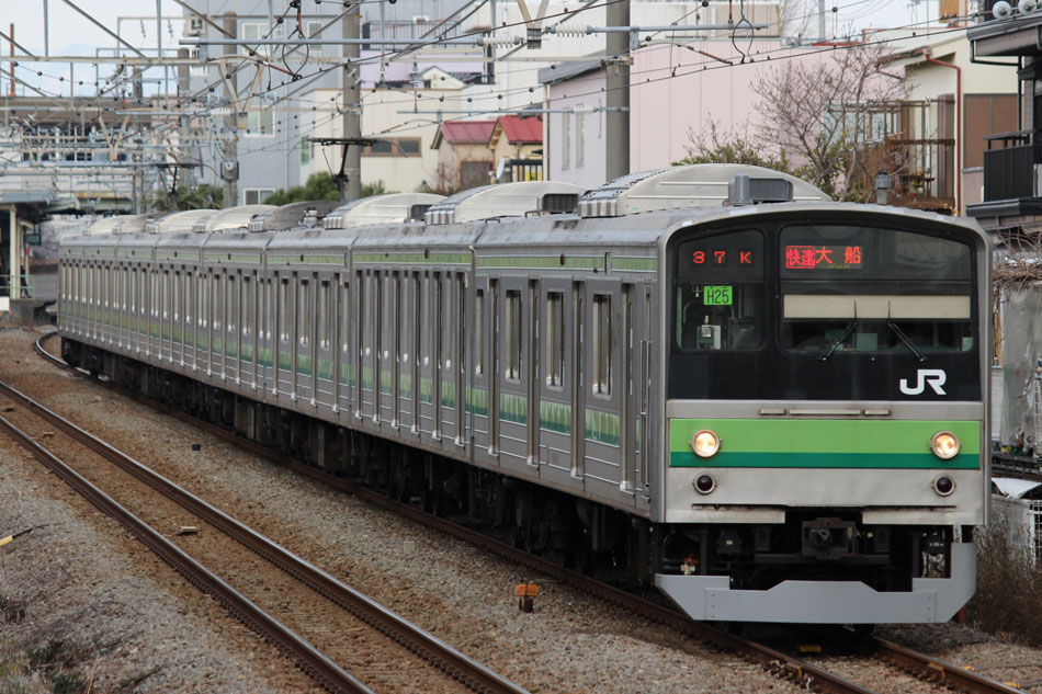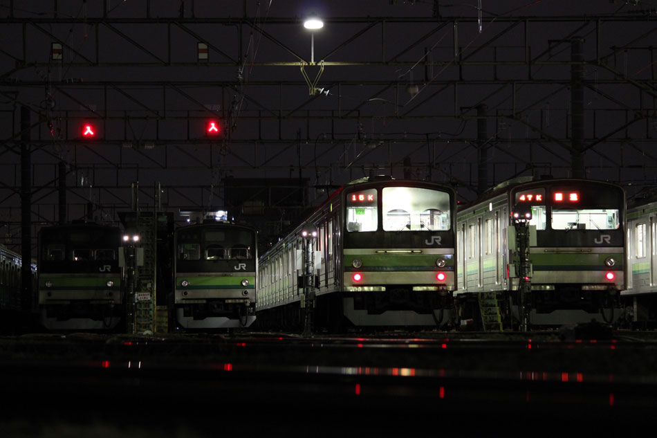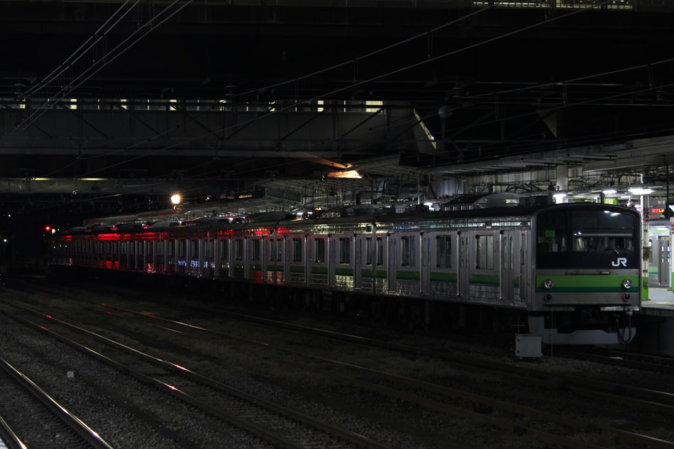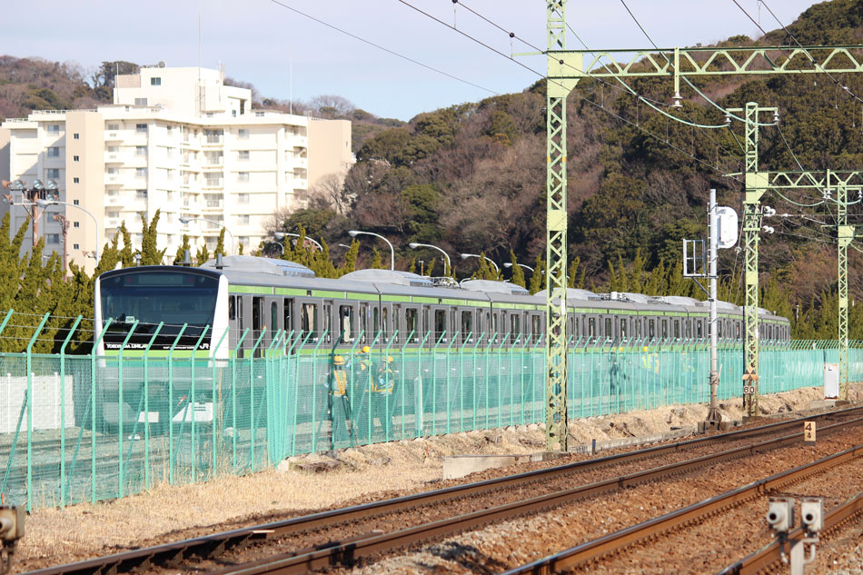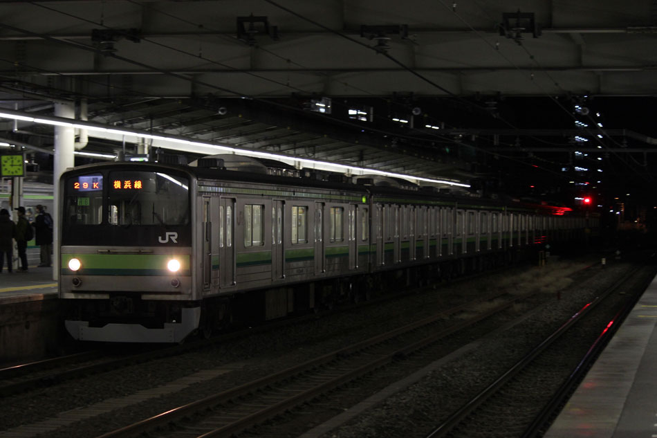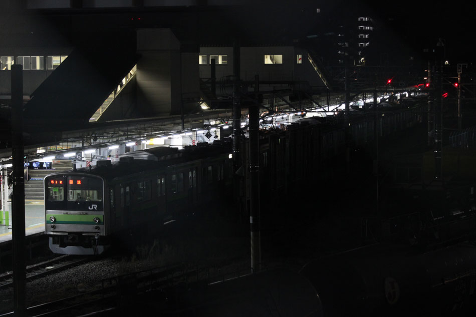 1月1日〜1月15日の話。 ・2日 836KはH1編成が充当。 ↑836K 205系H1編成8B 快速"大船行" ・3日 836KはH25編成が充当。 ↑836K 205系H25編成8B 快速"大船行" 続いて深夜(日付超えて4日)には八王子停泊の記録へ。6番線に停泊となる51KはH15編成が充当。 ↑205系H15編成8B 停泊@八王子(上記2点) ホームに入場した時点で完全に電源が落とされました。 ↑同上 5番線に停泊となる45KはH26編成が充当。 ↑2345K 205系H26編成8B 各停"八王子行"@八王子 年末年始なので運休かなと思っていたものの、下1には石油貨物が停車中だったので電源を落とす瞬間は撮影できず。 ↑同上(停泊) 最後に通路の窓から。八王子で眠りにつくH26編成、この時点で横浜線での活躍は残り1ヶ月を切っていました。 ↑同上 ・5日 836KはH22編成が充当。 ↑836K 205系H22編成8B 快速"大船行"@淵野辺 夜は橋本派出へ。いい並び。 帰りがけに、西門踏切のクリスマスツリーがまだ出ていたので。205系にとっては最後のクリスマスでした。 ・7日 横浜線E233系第一陣となるH016編成がJ-TREC総合車両製作所(横浜)を出場するということで大船方面へ。810KはH28編成が充当。 ↑810K 205系H28編成8B 各停"大船行"@大船 大船到着後は鎌倉車両センターに入庫となりますが、大船駅発車時点で既に出庫時(2111K)の行き先となる「橋本」を表示。 ↑同上 続いて出場車両が留置される京急線神武寺駅へ。初めて実物を見た時は実感が湧かなかったものですが…今見ても本当に格好良いですね!良い車両を貰えたなぁと思います。 ↑E233系H016編成8B@神武寺駅留置線 新鶴見からDE10がお迎えに行き、逗子駅にはDE10 1556号機に牽かれて入線。 ↑DE10 1556[新]+E233系H016編成8B@逗子 DE10を切り離し、パンタを上げた直後には一瞬でしたが「横浜線各駅停車根岸線直通/大船」の表示も出ました。 ↑試9720M E233系H016編成8B 試運転@逗子 初編成ということで、逗子駅にも多くのギャラリーが詰めかけていました。 ↑同上 北鎌倉駅沿線に移動。ここも人が多かったですが場所を確保し本番。被りギリギリでした…もう少し駅寄りで構えられていた方は被られていたようで。 ↑試9720M E233系H016編成8B 試運転@北鎌倉〜大船間 試運転は本郷台で折り返し、大船に到着後は入庫ということで、笠間の跨線橋にて。 ↑試9721M E233系H016編成8B 試運転@本郷台〜大船間 翌日は東海道貨物線で試運転が行われましたが、こちらは撮影できず。 ・11日 836KにはH14編成が充当。 ↑836K 205系H14編成8B 快速"大船行" ・12日 この日の深夜(日付超えて13日)は、八王子始発で唯一の上り橋本行きの撮影へ。橋本駅2番線に下り方から入線するのは定期列車ではこれだけ。 ↑2428K 205系H6編成8B 各停"橋本行"@橋本 ・13日 この日は早朝から根岸線へ、まずは根岸〜山手間で富士山バック。 ↑847K 205系H8編成8B 各停"八王子行"@根岸〜山手間 続いて俯瞰できる場所に移動。根岸線らしい工業地帯を背に走る直通列車。 ↑817K 205系H27編成8B 各停"八王子行"@同上 836KはH24編成が充当。 ↑836K 205系H24編成8B 快速"大船行"@関内 1月上旬の撮影分は以上になります。
