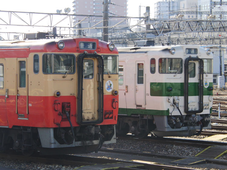 宇都宮駅東公園のEF57 7号機を訪問した後は、宇都宮駅に戻って、烏山線の運用調査のため駅の横にある宇都宮運転所を外から観察してみることに。 まずは常駐機関車から、EF65−1102とEF81−133の並び。 ↑EF65-1102[田]・EF81-133[田] EF65−1102はパン上げ状態で留置。日光線でたまに試単を行なっているようなので、それの関係か? ↑EF65-1102[田] 宇都宮運転所所属のDE10−1604。宇都宮運転所にはDE10が14両、DE11が5両配置、それぞれ配置されていますが、尾久車両センターや水戸で常駐するカマ、大宮工場入れ換え指定機になっているカマなど、宇都宮にいるカマはそれほど多くありません。1604号機は首都圏で見た事はありません。 ↑DE10-1604[宇] 続いて烏山線の車両へ、国鉄標準色風塗装のキハ40は2両とも運用に入っていませんでした。 ↑キハ40 1007 キハ40 1007と1008の並び。 ↑キハ40 1007・キハ40 1008 宇都宮駅構内には211系と日光線用の107系が留置中、ちょうどまもなく引退となる予定の2車種の並びになっていました。 ↑211系A28編成・107系N7編成 この後は、宝積寺に移動して烏山線の撮影に向かいます。続く。 | カレンダー