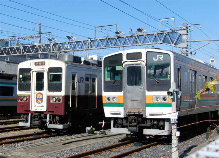 宇都宮で昼食を摂り、まだ帰るのは早いということで、3月で引退となる日光線107系の鹿沼行きにに乗車して鹿沼まで往復することにしました。 107系は車体こそ比較的新しいものの、足回りは165系のものを使用しているため、ガタがきているようです。乗り心地の点ではそこまで気になりませんでしたが。また、曇ってしまったのと、夕方だったこともあり、車窓はあまり楽しめませんでしたが、基本的には住宅街の中を走行し、終点・鹿沼に到着。 というわけで鹿沼駅舎。 折り返しの宇都宮行きを撮影するため宇都宮方の踏切から駅構内を。時間がないのでここで妥協…。 というわけで踏切障害検知器が思い切りフレームイン…記録程度ということで。引退までにリベンジしたいものですがどうなるでしょう。うまく予定が組めればいいのですが。 ↑854M 107系N7編成2B 宇都宮行@鹿沼付近 後続の宇都宮行きに乗車。鹿沼で待機中に軽く地震がありましたが、運行に影響はなく宇都宮には定時で到着。宇都宮からは、115系が宇都宮まで入線する1日1往復のみ運行の両毛線直通472Mに乗って小山へ。後ろからすぐ湘南新宿ライン直通が来ていることもあり、本気の走りで宇都宮線時代の面影を色濃く残す列車でした。 ↑472M 115系T1144編成4B 高崎行@小山 小山からは後続の快速ラビットで帰りますが、列車待ち中に水戸線が1本到着。こちらも、下館から真岡鐵道、友部からは常磐線など、面白い場所がいろいろあるので、いつか乗車したいですね。 ↑764M 415系K538編成4B 小山行@小山 この後折りたたみ自転車を置いて再び上野駅へ。続きます。
