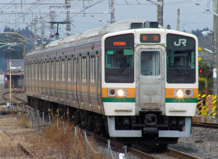 烏山線を撮影した後は、宝積寺駅に戻って、駅からすぐのところにある宇都宮方の踏切へ。 高崎車両センター所属の211系としては唯一となった、前面行き先表示を幕のまま残しているA36編成。E233系への置き換えが進んでおり、基本編成は続々と長野に送られ、各地に疎開していますが、付属編成はまだ運用の置き換えが行なわれていないため、しばらくの間は安寧と思われます。 というわけで、宇都宮〜黒磯間のローカル運用に入る幕車、宝積寺駅の発車シーン。 ↑1554M 211系A36編成5B 宇都宮行@宝積寺付近 撮影後、上り・下り列車までどちらも時間があったので、宝積寺駅舎を観察。なんでも、建築家の隈研吾氏の設計によるものだそうで、なかなかに特徴的な駅舎でした。 この後は下り列車に乗って蒲須坂のお立ち台に向かう予定でしたが、宝積寺駅に到着してみるとすっかり曇り空、これでは露出もすぐに無くなってしまうのですぐにやってきた上り列車で引き返し。 ↑1556M 211系A30編成5B 宇都宮行@宝積寺 というわけで、とりあえず宇都宮に戻って遅い昼食となりました。 このまま帰っても面白くないので、日光線の区間列車に乗って少しだけ乗り鉄。続きます。