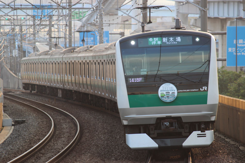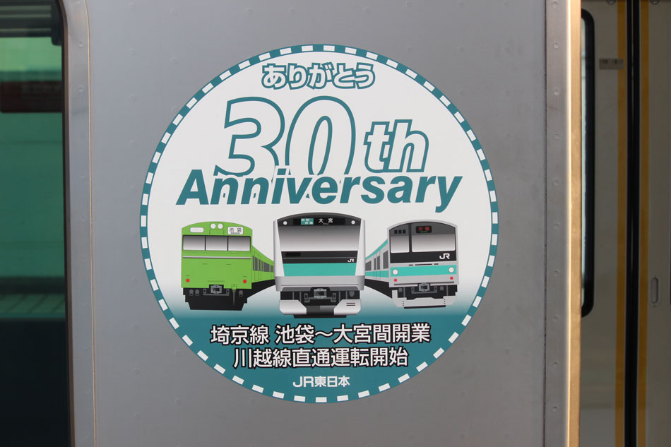 この日は、埼京線(池袋~大宮間)が開業30周年を迎えたことを記念して、ヘッドマークが4編成に掲出されているということで、舞浜に行った帰りに東雲に寄り道。 ヘッドマークは各編成ごとに異なる計4種類が、池袋駅・大宮運転区・大宮車掌区・川越車セの社員の考案により制作されました。ハエ130編成は、103系・E233系・205系が並ぶデザイン。 ↑1418F ハエ130編成10B 各停"新木場行"@東雲 ↑1619F ハエ130編成10B 快速"川越行"@同上 先頭車両の側面には、その編成のヘッドマークと同様の絵柄の装飾も。 ハエ102編成は、キャラクター風にデフォルメされた205系とE233系のデザイン。 ↑1512F ハエ102編成10B 各停"新木場行"@同上 残りの2編成は、機会が合わず撮影できないまま期間が終了してしまいました。残念。 | 次のページ>> | カレンダー